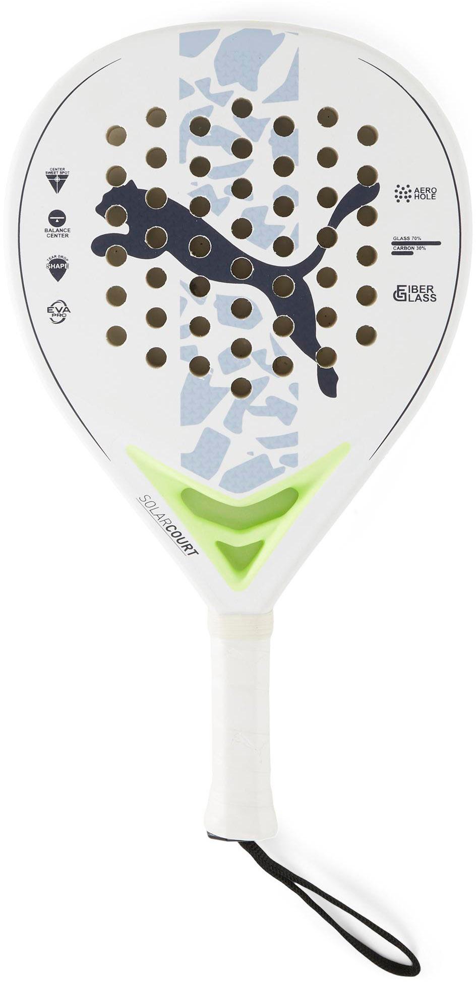Tropfenförmiger Padelschläger mit gleichmäßiger Gewichtsverteilung, optimal für fortgeschrittene Spieler; Doppelrohrrahmen aus einem Mix aus 70% Fiberglas und 30% Carbon; mittelelastischer Kern für reaktionsschnelle Kraftübertragung.