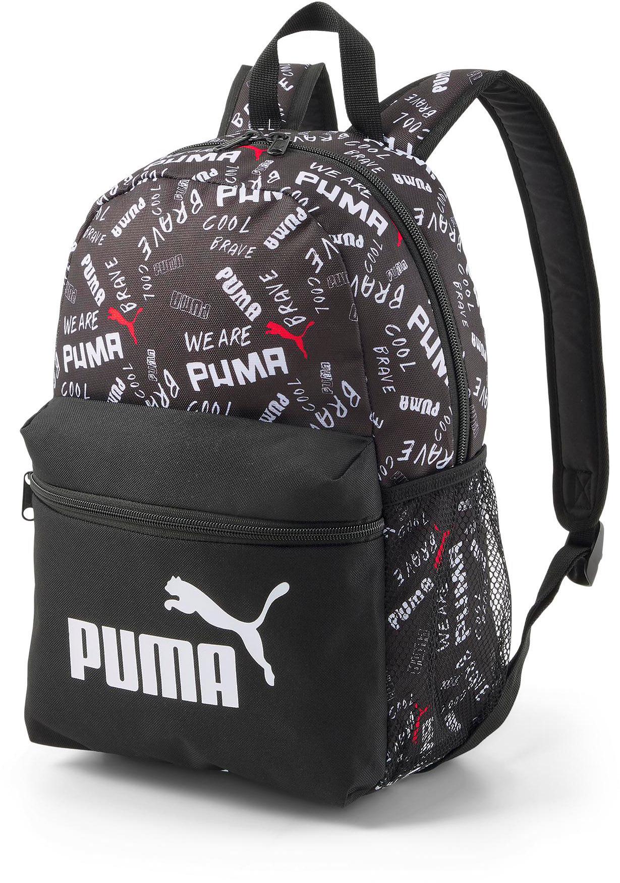 Kleiner Freizeitrucksack mit trendigem Grafikprint; Tragegriff aus Gurtband; verstellbare, gepolsterte Träger; reflektierende Schlaufe mit Puma Cat Logo; 2-Wege-Reißverschluss zum Hauptfach; Reißverschlussfach mit Logo-Print vorne; Seitentasche aus Mesh; gepolstertes Rückenteil; Maße (H/B/T) : ca. 36 x 25 x 12 cm; Material 100% Polyester.