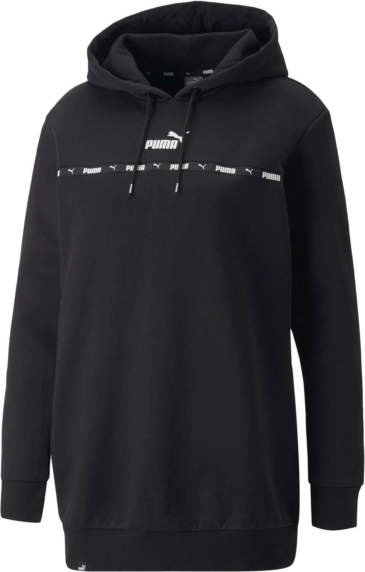 Länger geschnittener Hoodie mit Labelprint und Logotape auf Brusthöhe; Kapuze mit Kordelzug; Rippbündchen an den Ärmelabschlüssen und am Saum; Material 66% Baumwolle, 34% Polyester.