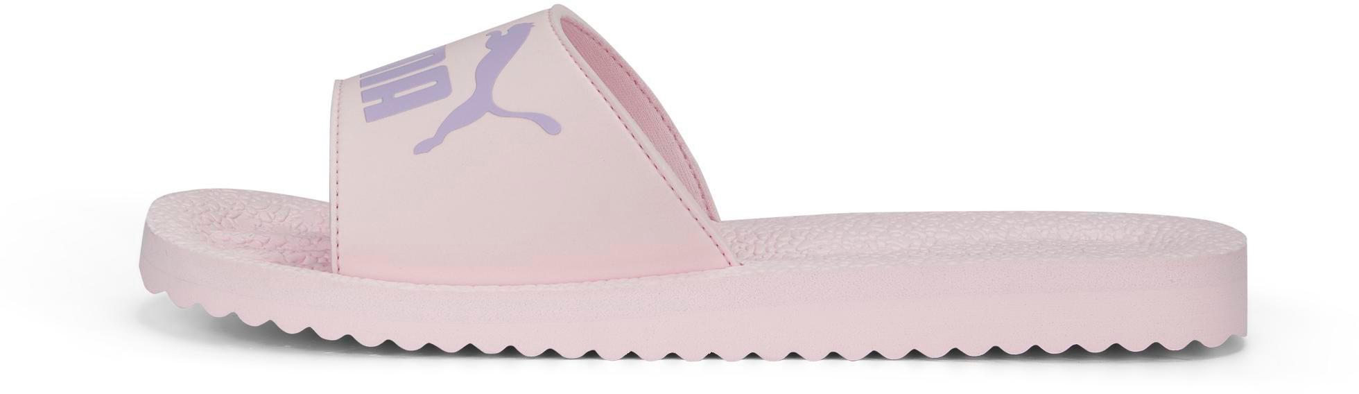 Modische Badeschlappen für viele Gelegenheiten; höchste Sicherheit auch auf nassen Böden durch rutschfestes Profil an Ober- und Unterseite der Sohle; maximaler Tragekomfort dank anpassungsfähigem EVA-Kunststoff; Markenprint; Riemen aus Synthetikmaterial.
