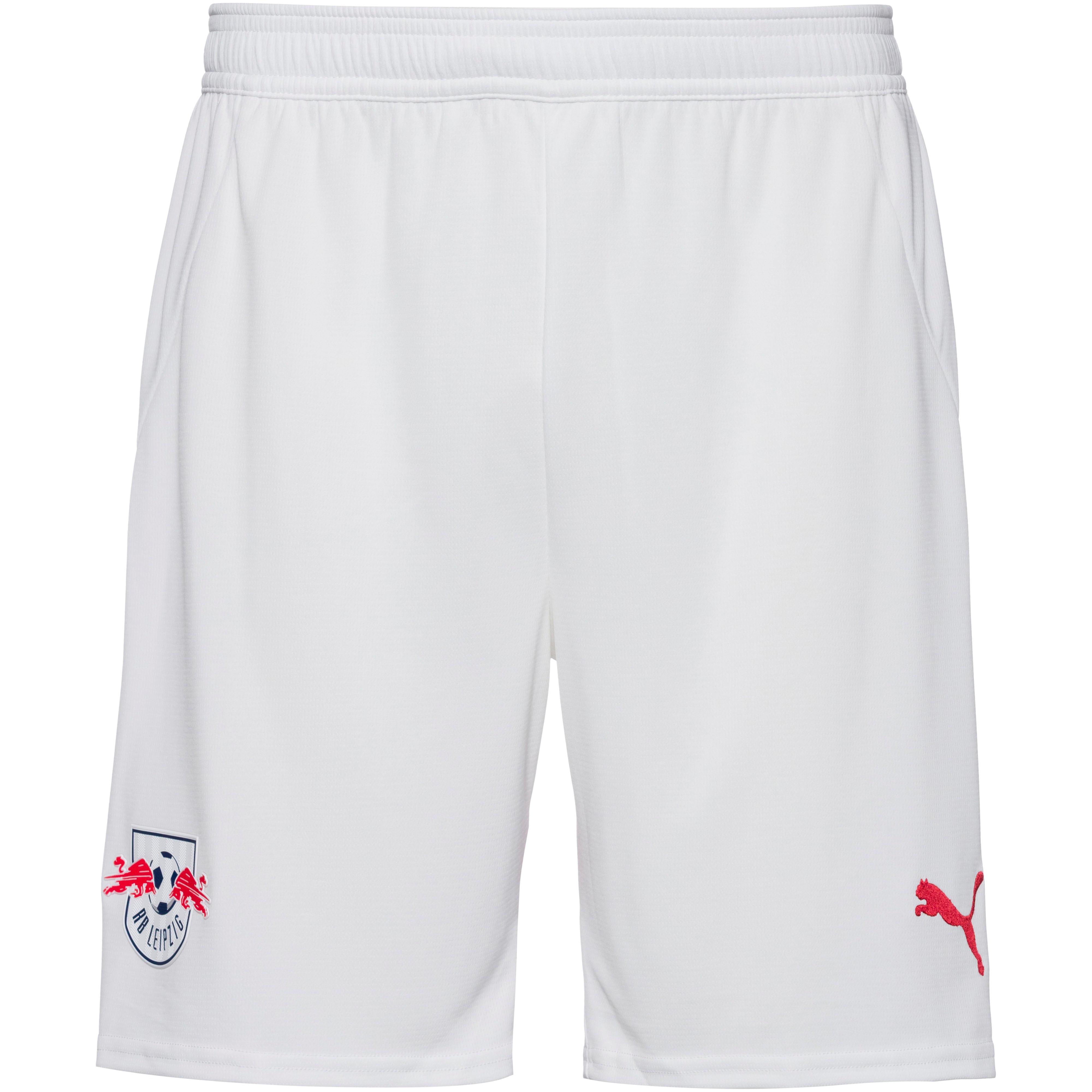 Fußballshorts im Heim-Design des RB Leipzigs; mit feuchtigkeitsableitender und schnelltrocknender dryCELL-Technologie; weitenregulierbarer Elastikbund mit innenliegendem Kordelzug; im Re:fibre Prozess aus mind. 95% recyceltem Textilabfall hergestellt; Material 100% Polyester.