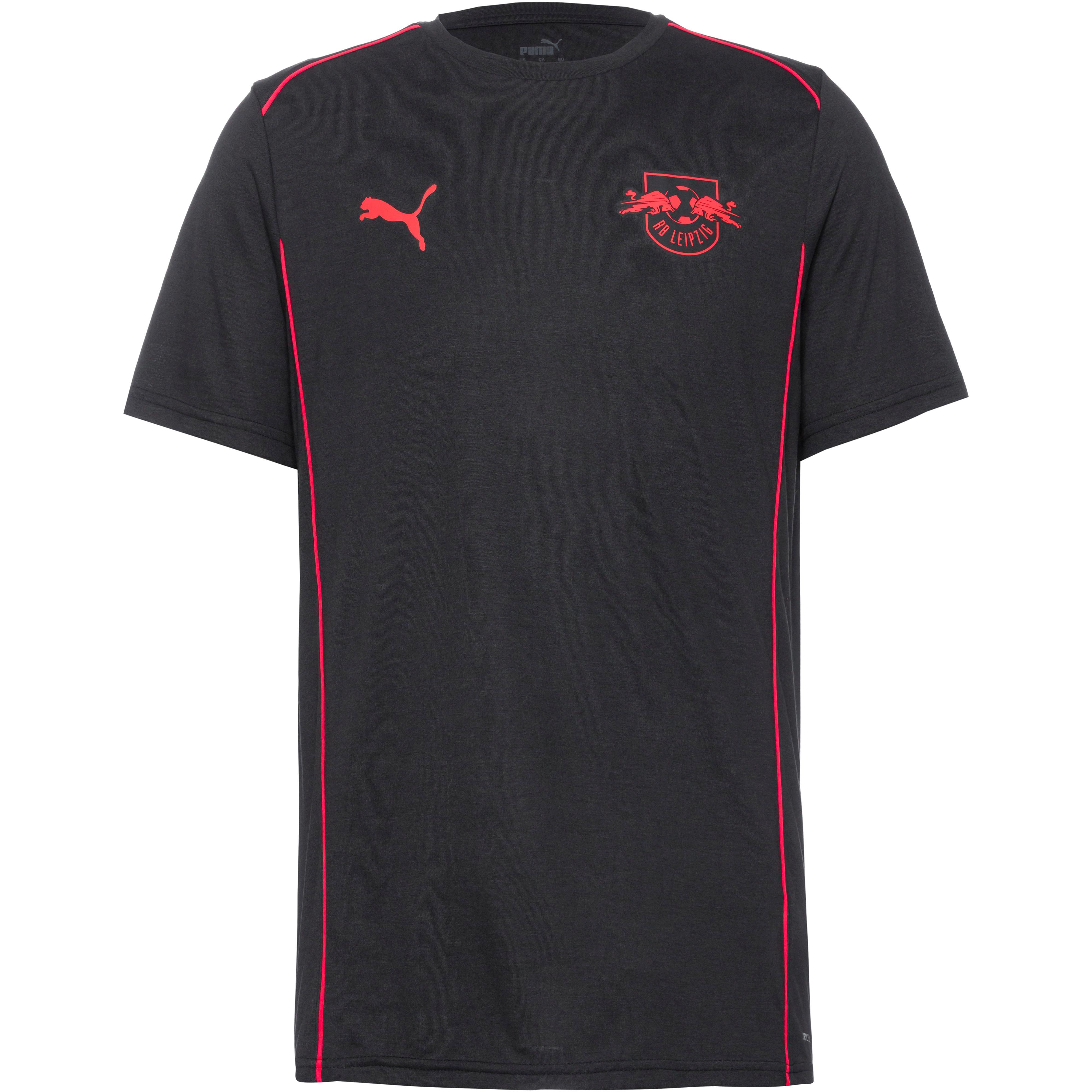 Funktionales T-Shirt mit Vereinsdetails des RB Leipzigs; hervorragendes Feuchtigkeitsmanagement durch dryCELL-Technologie; Rundhalsausschnitt; Markendetail; Recyclingmaterial; Material 65% Polyester, 35% Viskose.