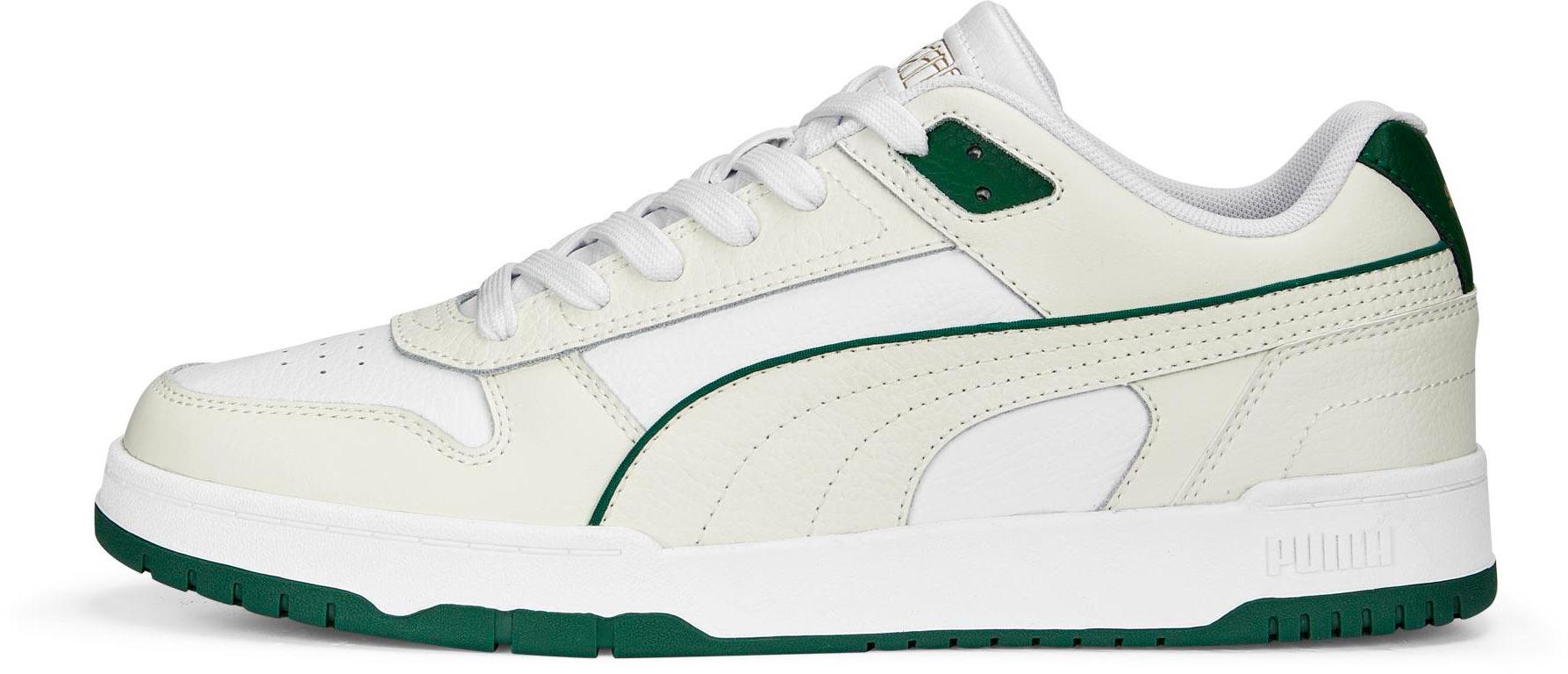 Flache Ledersneakers mit kontrastfarbenen Details; Standard-Schnürung; Perforationen am Vorfuß sorgen für Belüftung; gepolsterter Schaft; Textilfutter; leicht profilierte Außensohle aus Gummi; Formstripes an den Seiten.