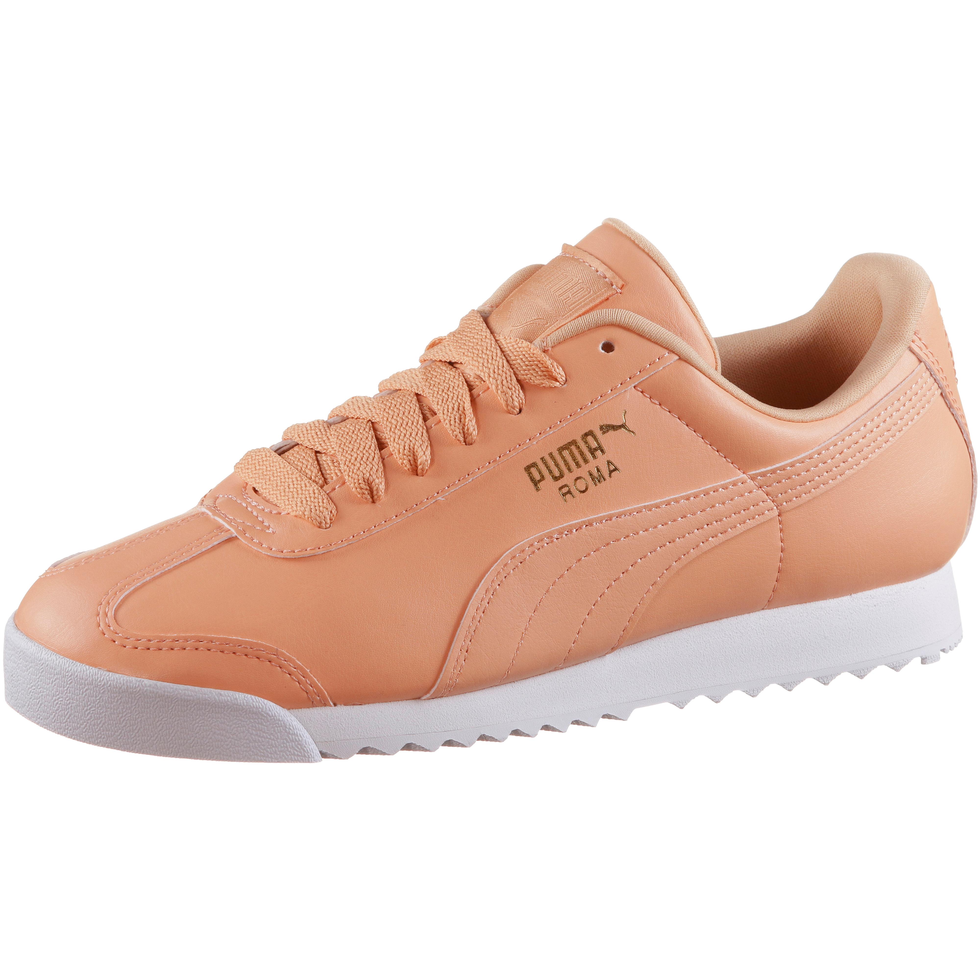 PUMA ROMA. Alltagstaugliche Sneakers aus Synthetik-Leder; 7-Loch-Schnürung; weich gepolsterter Schaft; Textilfutter; herausnehmbare Einlegesohle; Zehenbereich mit Gummi-Umrandung; EVA-Zwischensohle; Gummi-Außensohle mit Rillenprofil; Label-Details.