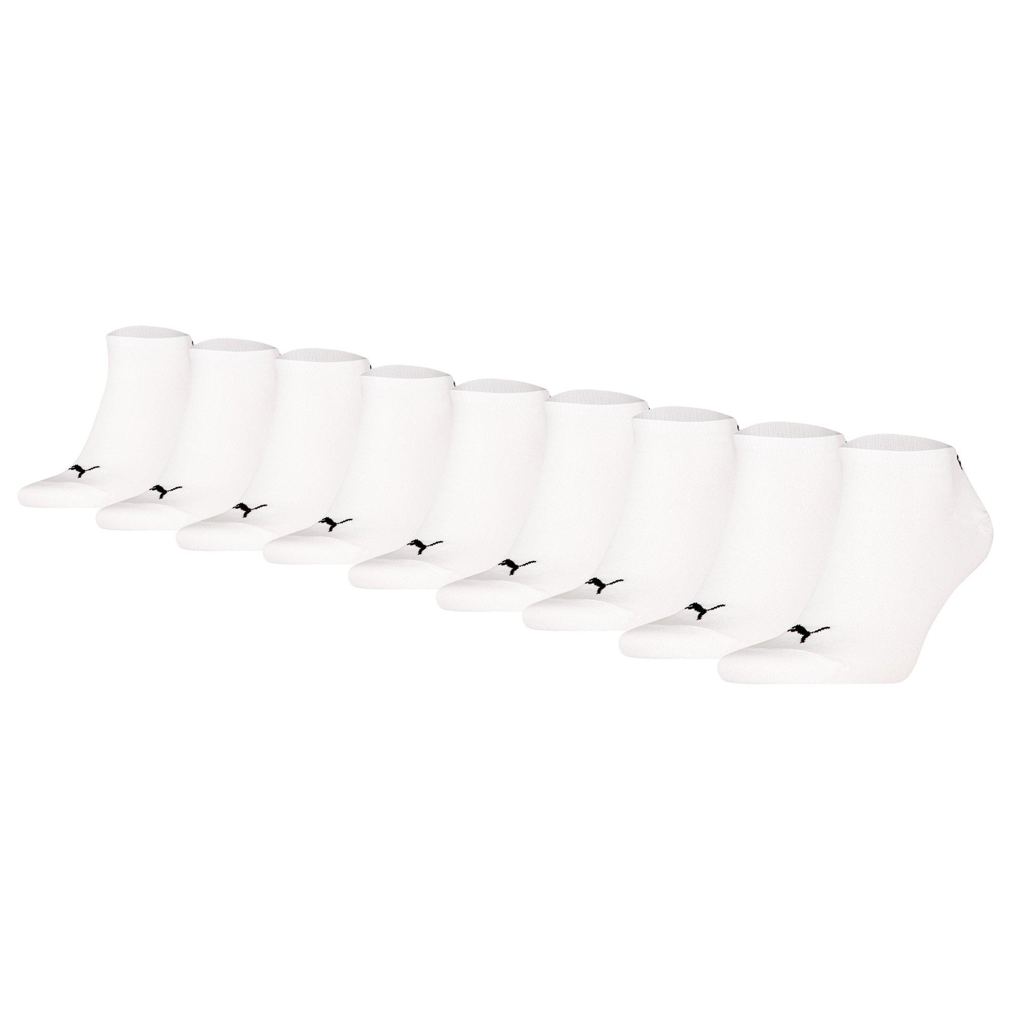 PUMA Unisex Sneakersocken im praktischen 9er Pack. Einfarbige Basic Socken mit markentypischen Logo und flachen Zehennähten.