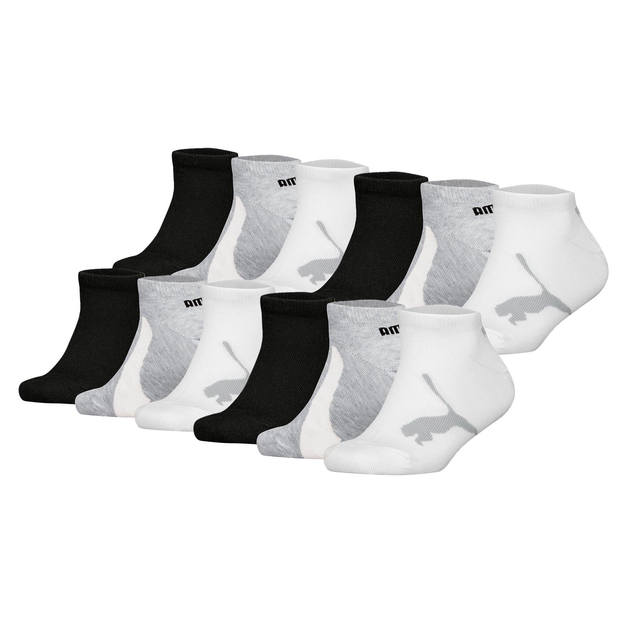 Basic Sneakersocken für Kinder von der Marke PUMA. Einfarbige Socken mit verschiedenen markentypischen Logo im praktischen 12er Pack. Flache Zehennaht.