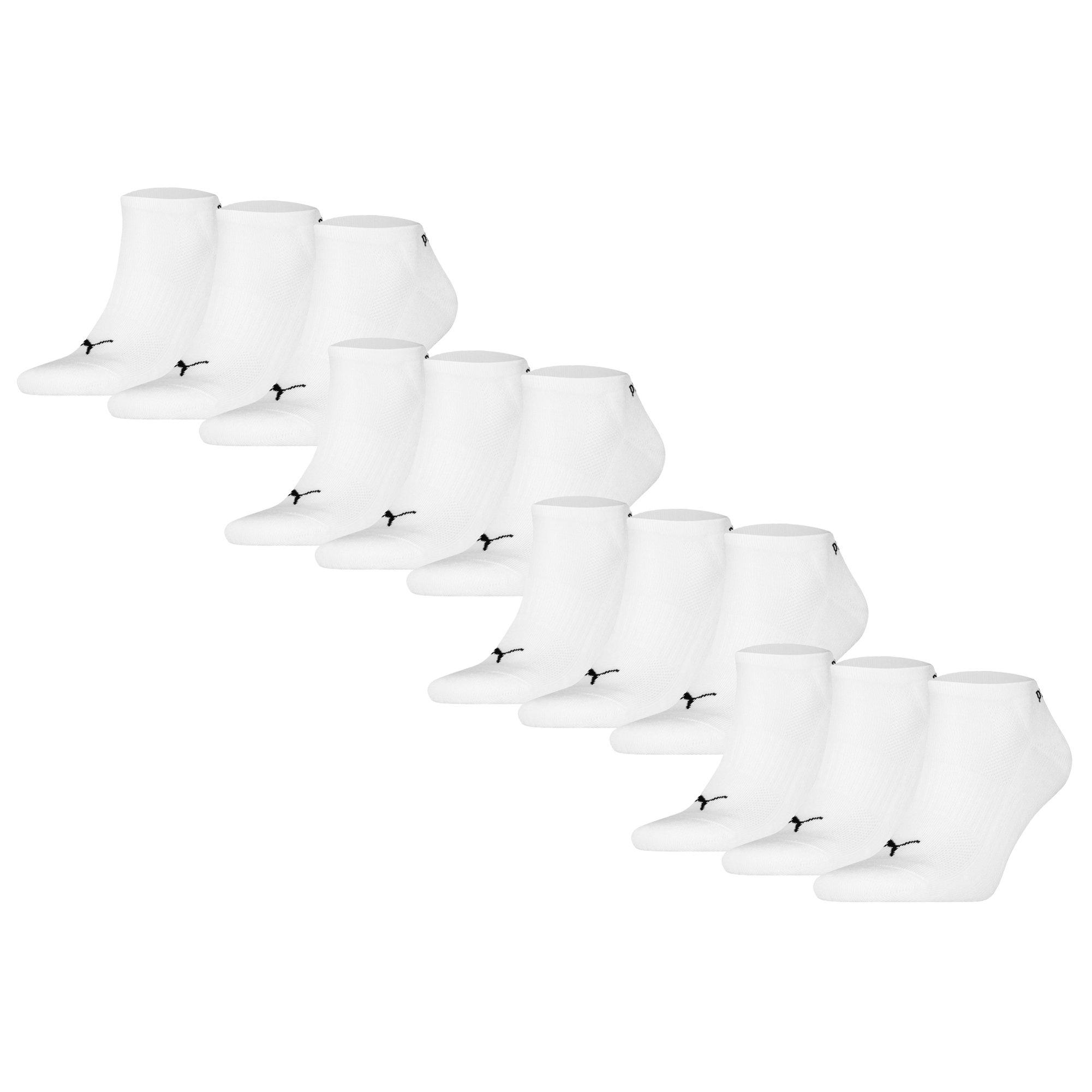 Sportliche Unisex Sneakersocken von der Marke PUMA. Gepolsterte, einfarbige Socken mit markentypsichen Logo im praktischen 12er Pack.
