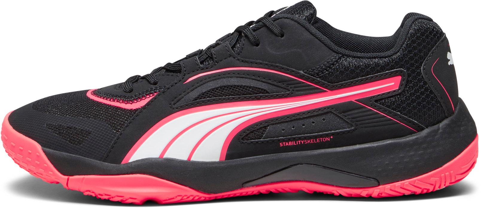 Hallenschuhe aus atmungsaktivem Obermaterial mit Ventmesh+; seitlicher Formstrip und Cat-Logo an der Ferse; das StabilitySkeleton+ bietet hervorragende Stabilität; Fußinnenseite mit GripProtect+ für Haltbarkeit und zusätzliche Stabilität; weich dämpfende Schaumstoff-Zwischensohle mit hervorragendem Rebound; StabilitySpine+ unterstützt die Energierückführung und verhindert ein Verdrehen des Mittelfußes; non-marking Gummi-Außensohle.