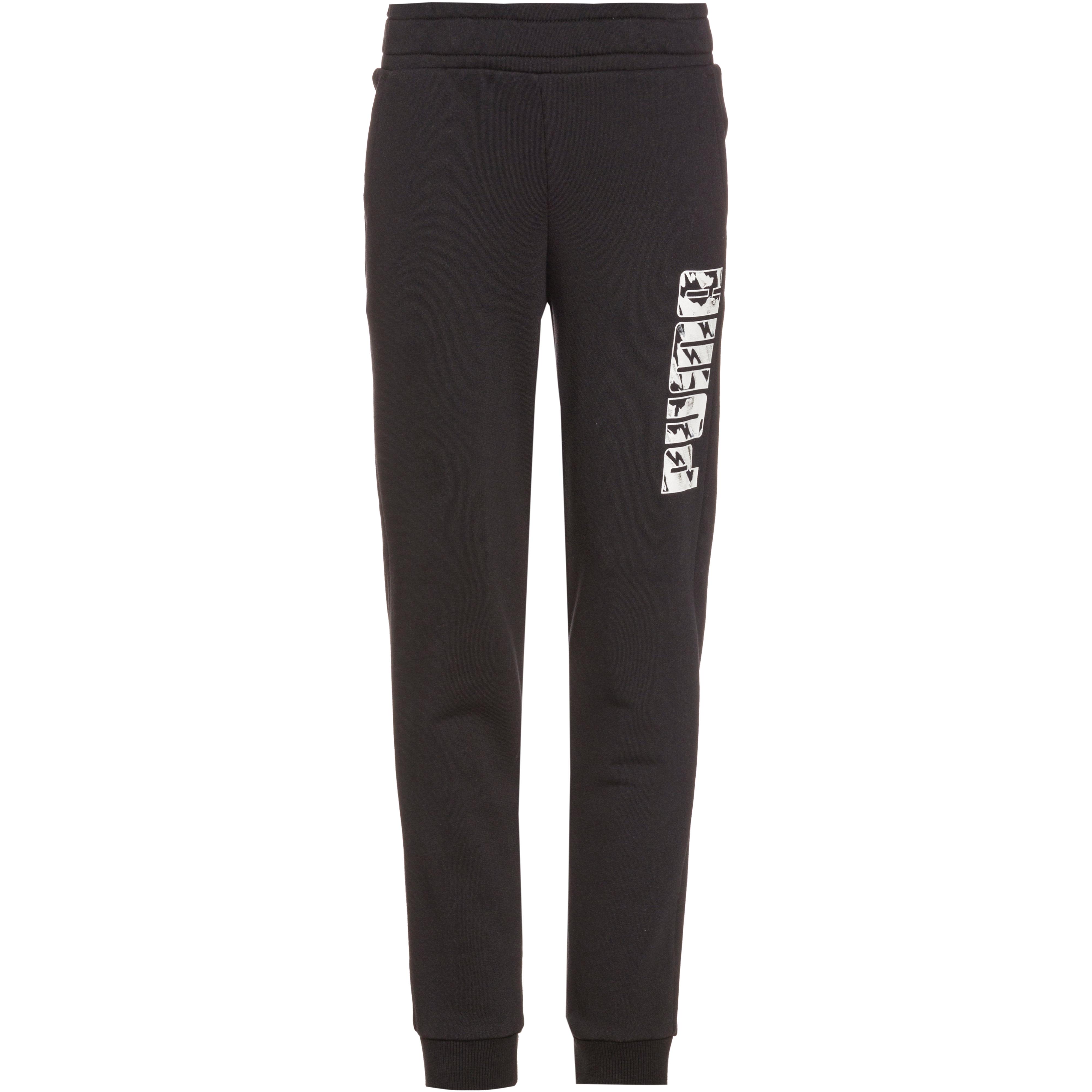 PUMA Funktionale Sweathose für Kinder aus weichem Baumwollmischgewebe mit elastischem Bund und integriertem Kordelzug; 2 seitliche Eingrifftaschen; Abschlüsse mit Rippbündchen; angeraute Innenseite; Markenschriftzug; Logo-Detail; Material 68% Baumwolle, 32% Polyester.