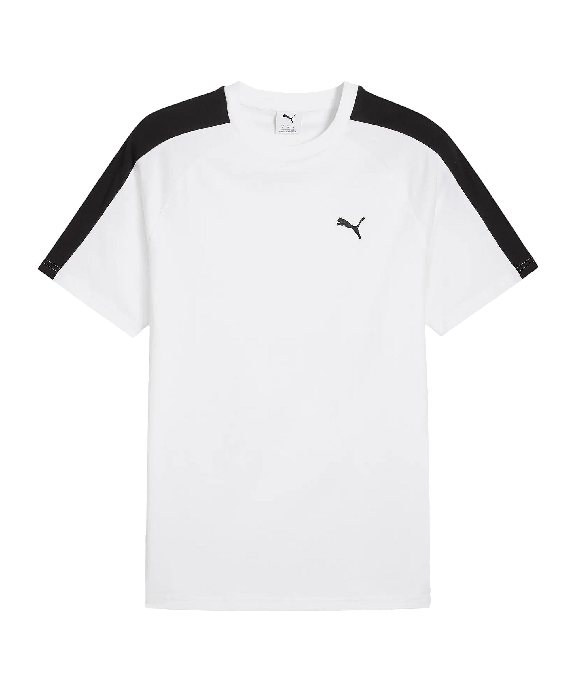 Das PUMA T7 T-Shirt ist dein idealer Begleiter für entspannte Freizeitaktivitäten. Dieses stylische T-Shirt von PUMA passt perfekt in deinen Lifestyle und sorgt für einen lässigen Look. Mit seinem ikonischen Design und der bequemen Passform fühlst du dich den ganzen Tag über wohl. Die atmungsaktive Baumwollmischung sorgt für ein angenehmes Tragegefühl, egal ob du in der Stadt unterwegs bist oder einfach nur chillst. Und das Beste: Es besteht teilweise aus recycelten Materialien, was nicht nur gut für dich, sondern auch für die Umwelt ist. Schnapp dir das PUMA T7 T-Shirt und erlebe den unverwechselbaren Style und Komfort, den PUMA dir bietet. Du wirst die Qualität und den Look lieben! Produktdetails:Herstellerfarbbezeichnung: PUMA WhiteHauptfarbe: WeißNachhaltigkeit: Teilweise aus recycelten MaterialienTechnologie-Eigenschaften: atmungsaktiv, komfortabelMaterial: 100% Baumwolle