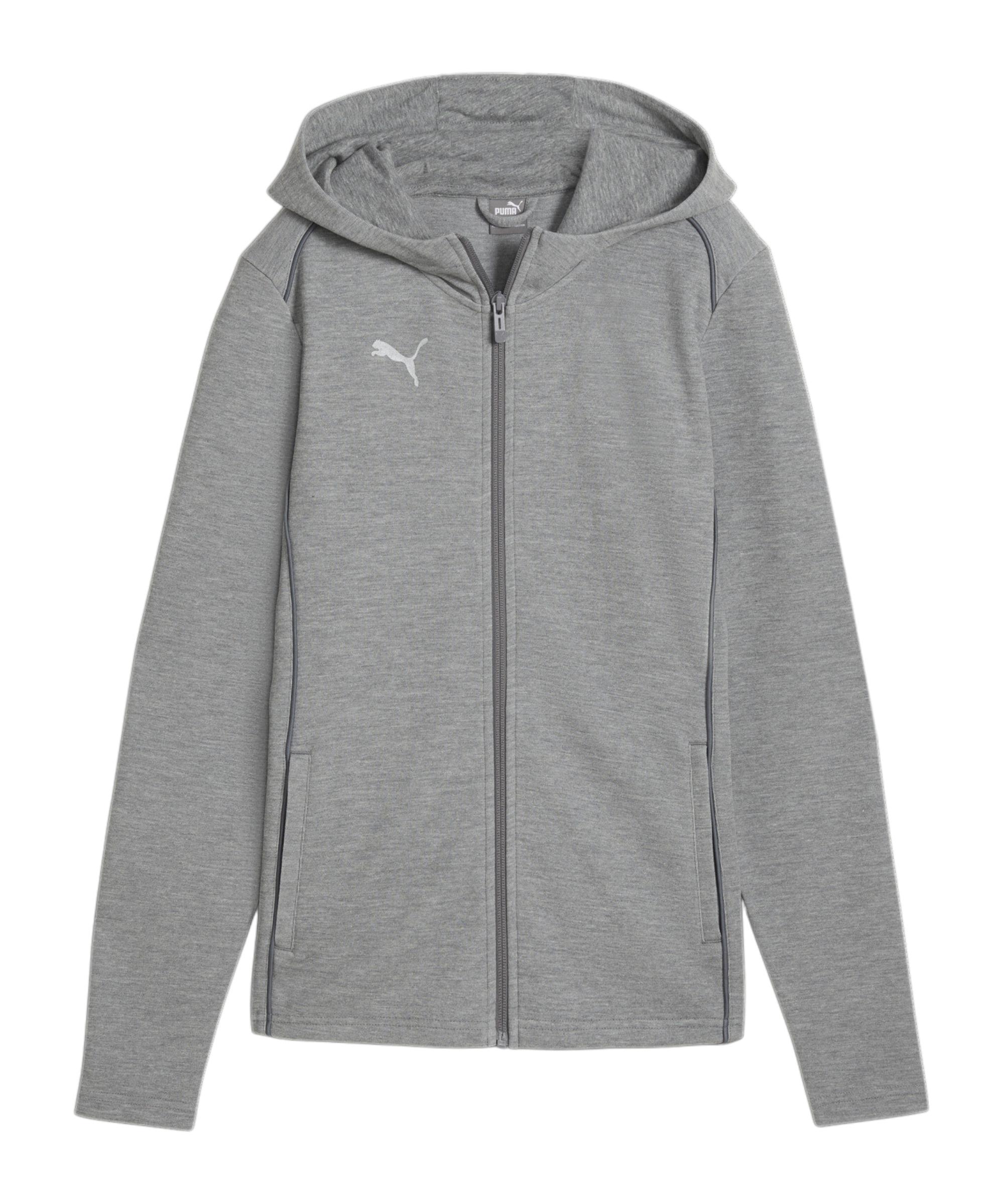 Ihr zeigt allen, wer ihr seid und was ihr drauf habt, durch die bequeme teamFINAL-Kapuzenjacke in Grau. Die PUMA Damen-Kapuzenjacke ist die richtige Wahl. Sie ist atmungsaktiv, bequem und wärmend. Eine tolle Top-Kapuzenjacke vom 1948 gegründeten und international erfolgreichen Sportartikelhersteller mit der PUMA Cat. Diese Jacke wurde geschaffen, um eure Leistung um ein Level zu erhöhen. Mit dieser Jacke seid ihr für jede Einheit bestens ausgestattet. Mit dieser Jacke seid ihr für die nächste Einheit perfekt ausgestattet. Verschließt diese Jacke ganz bequem und schnell mit dem Reißverschluss. Für Aktivitäten bei schlechtem Wetter seid ihr mit der Kapuze hervorragend gerüstet. Produktdetails: Extras: Kapuze Ärmellänge: Langärmlig Eigenschaften: bequem, wärmend, atmungsaktiv Material: 77% Baumwolle, 23% Polyester