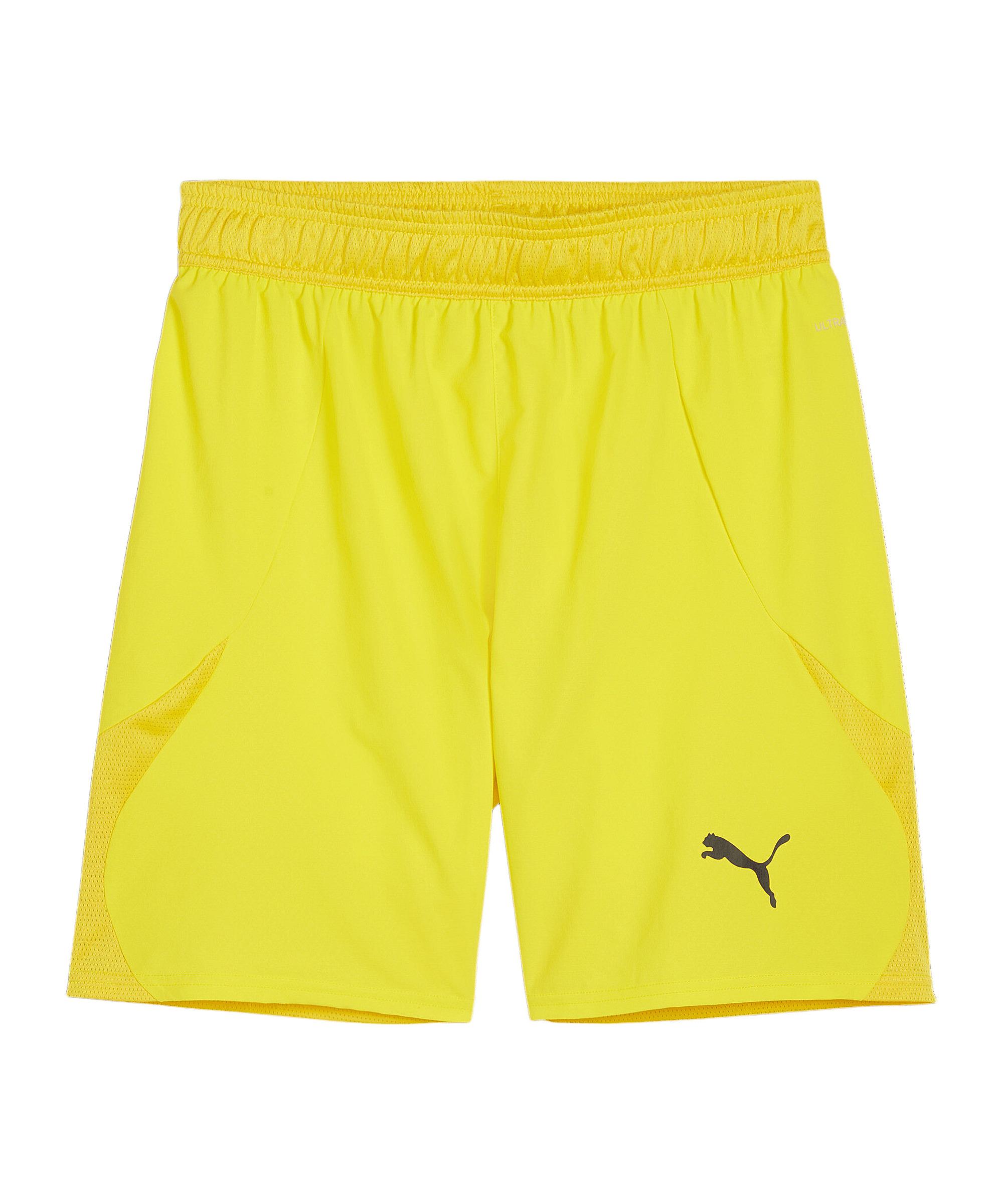 Die PUMA teamFINAL Short in Gelb ist die perfekte Ausstattung, mit der ihr unter Beweis stellt, was ihr könnt. Wir empfehlen die bequeme, leichte und atmungsaktive teamFINAL-Short mit dem angenehmen Tragegefühl. Ihr bekommt eine hohe Strapazierfähigkeit geboten. Ob beim Training oder beim Spiel – hiermit macht ihr stets eine hervorragende Figur. Ein wunderbares Oberklasse-Modell des 1948 gegründeten und international erfolgreichen Topherstellers aus Deutschland, das sich sehen lassen kann. Diese Hose ist optimal für euer Training geeignet und darf in keiner Sporttasche fehlen. Mit dieser Hose seid ihr als Mannschaft ideal für jedes Training und Spiel gerüstet. Sie hat einen Gummizug und besitzt eine flexible Passform. Produktdetails: Eigenschaften: bequem, atmungsaktiv, leicht Strapazierfähig Material: 100% Polyester
