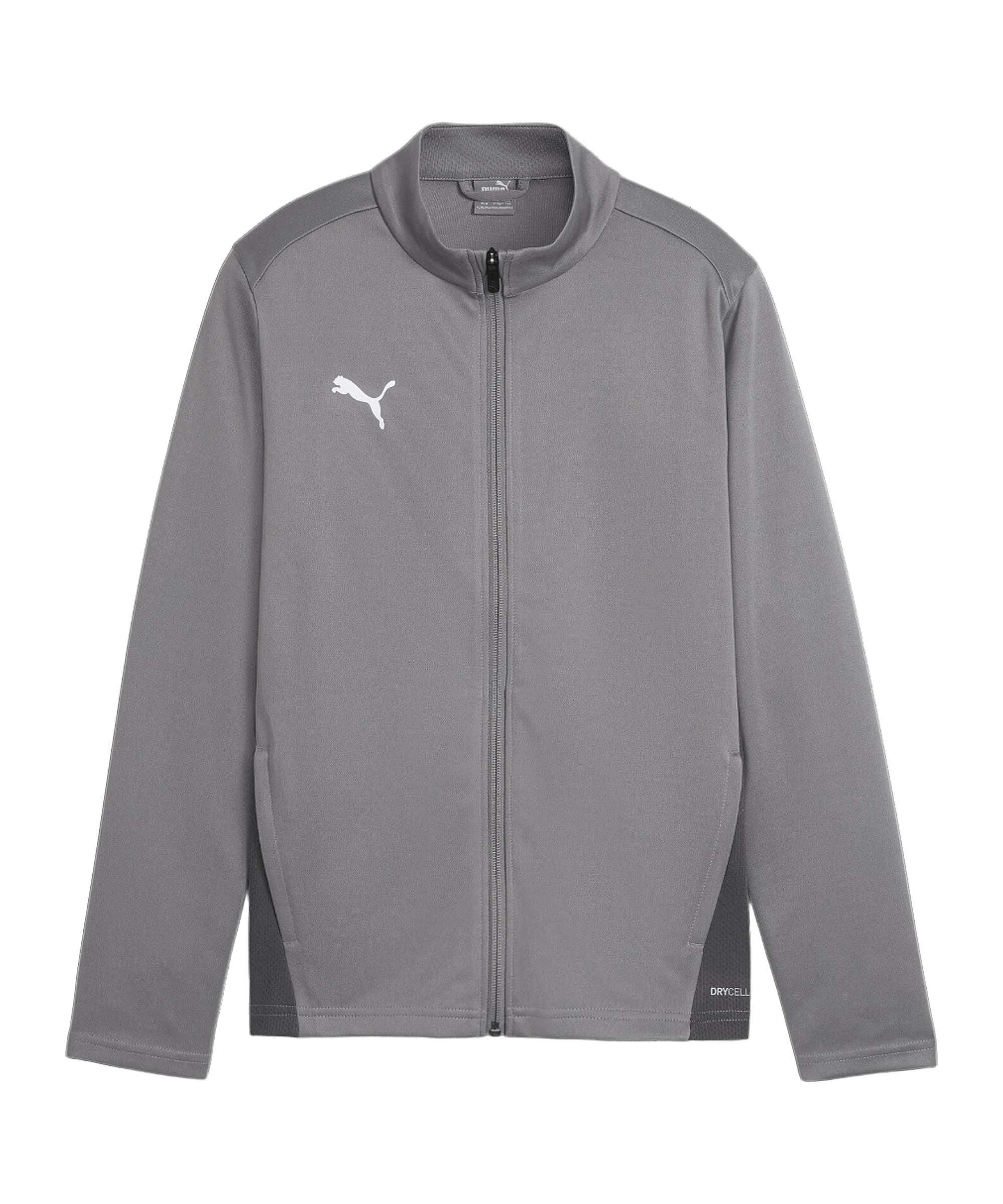 Mit der teamGOAL Kinder-Sportjacke in Grau bringt PUMA ein Produkt an den Start, mit dem ihr bestens ausgestattet seid und selbst bei Regenwetter zeigen werdet, was in euch steckt. Sie ist atmungsaktiv, bequem und schweißableitend. Eine hohe Strapazierfähigkeit wird euch geboten. Das wunderbare Modell reiht sich nahtlos in die hochwertige Produktreihe des 1948 gegründeten und weltweit etablierten Topanbieters aus Herzogenaurach ein. Ein optisch schicker Stehkragen bietet dieser langärmligen Sportjacke optische Unterstützung. Die Sportjacke besitzt seitliche Taschen. Die richtige Ausrüstung für Spaß an sportlichen Aktivitäten. Produktdetails: Ärmellänge: Langärmlig Ausschnitt: Stehkragen Taschen: seitliche Taschen Technologie: dryCELL Eigenschaften: schweißableitend, bequem, atmungsaktiv Strapazierfähig Material: 100% Polyester