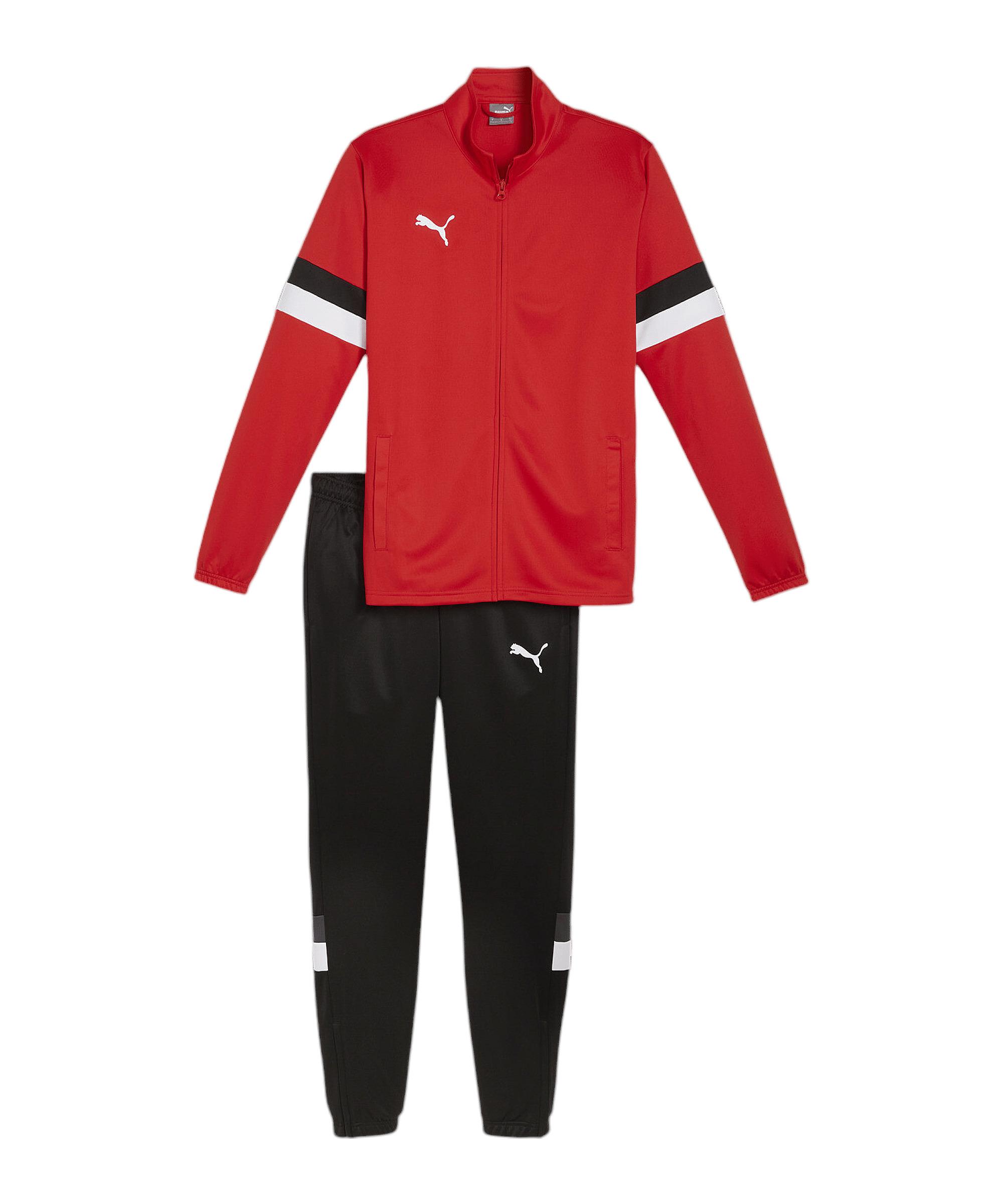 Ihr zeigt allen, wer ihr seid und was ihr drauf habt, durch das wärmende Modell in Schwarz. PUMA veröffentlicht mit dem Anzug ein wahrhaft einmaliges Produkt. Er ist atmungsaktiv, schweißableitend und wärmend. Auf die hohe Qualität des 1948 gegründeten und international etablierten Sportartikelanbieter mit der PUMA Cat ist auch bei diesem Trainingsanzug Verlass. Optische Unterstützung bekommt dieser langärmlige Anzug durch einen langen Schnitt sowie durch einen trendigen Stehkragen. Bei diesem Anzug wird durch Taschen seitlich Stauraum geschaffen und der Verschluss mittels Reißverschlusses sichergestellt. Holt euch diesen Trainingsanzug und seid nicht nur im Training bestens ausgestattet, sondern auch in der Freizeit. Produktdetails: Stauraum durch seitliche Taschen Ausschnitt: Stehkragen Langärmlig Enger Beinabschluss Eigenschaften: schweißableitend, wärmend, atmungsaktiv Material: 100% Polyester