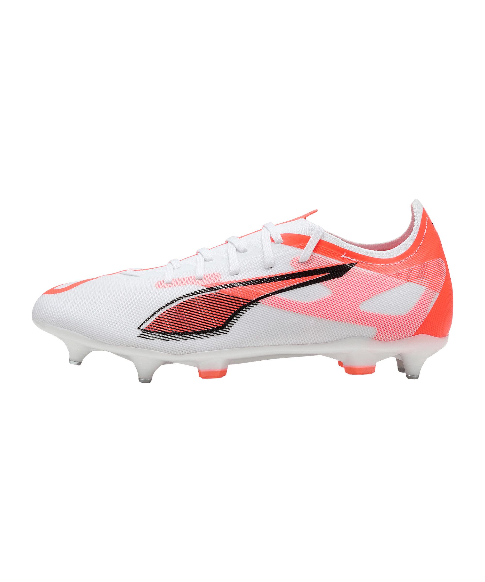 Der flach geschnittene PUMA ULTRA 5 Match SG ist ein schneller Fuszlig;ballschuh fuuml;r Mauml;nner und Frauen. Die PUMA Rasenfuszlig;ballschuhe sind geeignet fuuml;r regenweichen Naturrasen. Das Midrange-Modell gehouml;rt zum PUMA Unlimited Pack. Das macht diesen ULTRA 5 Fuszlig;ballschuh definitiv zu einer schouml;nen Gelegenheit. Schauen wir uns die Boots mal von oben bis unten an: nbsp; PUMA Spieler-Fuszlig;ballschuh fuuml;r Erwachsene Das ULTRA 5 Midrange-Modell in Erwachsenen-Grouml;szlig;en ist interessant fuuml;r schnelle Spieler-Typen, die Beschleunigung nach vorne suchen. Mit dem PUMA ULTRA 5 Match holst du dir gute Features zu einem interessanten Preis an deine Fuuml;szlig;e. nbsp; Mit schouml;nem Fit amp; Feel Fuuml;r uuml;bereugende Performance und schouml;ne Passform hat PUMA das Upper des Match-Modells entsprechend gestaltet: Der leichte Supportrahmen (eine etwas guuml;nstigere Variante direkt abgeleitet von der PUMA PWRTAPE-Version der Topmodelle), daruuml;ber Mesh mit einer duuml;nnen GRIPCONTROL-Schicht fuuml;r konstant zuverlauml;ssiges Ball-Handling bei schnellen Moves und der elastische Midcut-Schluuml;pfkragen sowie eine noch universellere Passform, die fuuml;r noch mehr Fuszlig;formen funktioniert, machen diesen PUMA ULTRA 5 Fuszlig;ballschuh fuuml;r Mauml;nner und Frauen zur echt oft genommenen Option. nbsp; PUMA ULTRA 5 Match mit Soft Ground-Sohle Mit der Stollensohle fuuml;r regenweichen Naturrasen setzt du deinen Speed schouml;n um. Die PUMA SG-Sohle aus gutem Spritzkunststoff ist leicht und vielseitig ndash; mit einem effektiven Mix aus FastTrax-Nocken und bissigen Metallschraubstollen fuuml;r guten Grip unter den schwierigen Bedingungen und dauml;mpfender Einlegesohle fuuml;r den kleinen Tick Extrakomfort. Schnapp dir den PUMA ULTRA 5 Match SG und genieszlig;e den Speed-Faktor. nbsp; Produktdetails: Typ: PUMA Rasenfuszlig;ballschuhe Linie: ULTRA 5 Modell: Match Preisstufe: Midrange-Modell Grouml;szlig;en: fuuml;r Erwachsene Sohle: SG (Soft Ground) Einsatzbereich: fuuml;r regenweichen Naturrasen Kragenschnitt: flach (Low Cut) Material: Nachhaltiges Produkt: mit recycelten Materialien hergestellt Obermaterial: Textil, Synthetik Innenfutter: Textil Laufsohle: gutem Spritzkunststoff