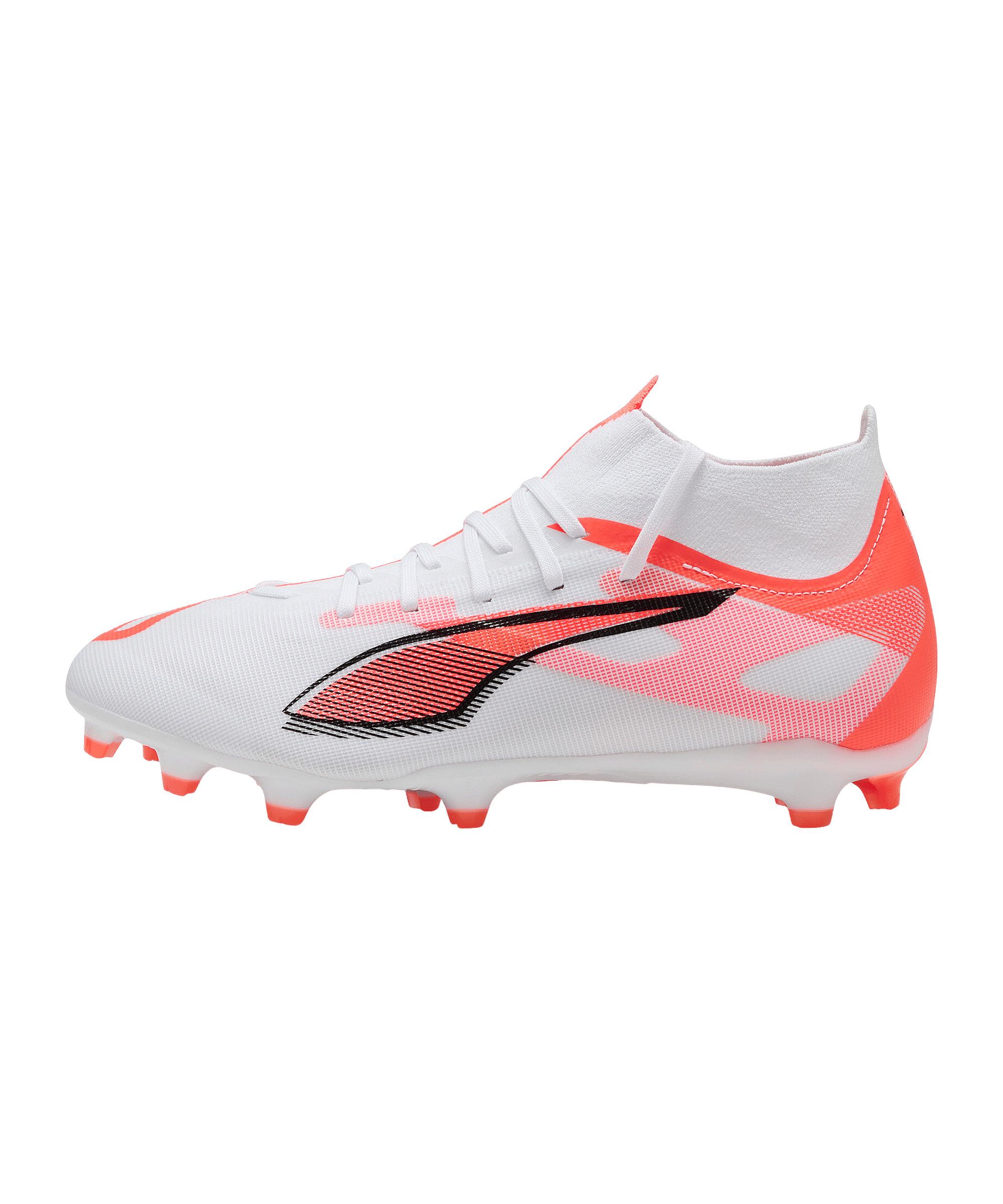 Der mittelhohe PUMA ULTRA 5 Match+ FG/AG ist ein schneller Fuszlig;ballschuh fuuml;r Mauml;nner und Frauen (der mittelhohe Schluuml;pfkragen ist das Plus-Feature und der hauptsauml;chliche Unterschied zwischen Match und Match+). Die PUMA Rasenfuszlig;ballschuhe sind geeignet fuuml;r festen Naturrasen und Kunstrasen. Das Midrange-Modell gehouml;rt mit Matte Aged Silver mit Akzenten in Yellow Alert und pinkfarbenem Sun Struck zum optisch ziemlich PUMA Audacity Pack. Das macht diesen ULTRA 5 Fuszlig;ballschuh definitiv zu einem optisch starken Modell. Schauen wir uns die Boots zusammen an: PUMA Spieler-Fuszlig;ballschuh fuuml;r Erwachsene Das ULTRA 5 Midrange-Modell in Erwachsenen-Grouml;szlig;en ist interessant fuuml;r schnelle Spieler-Typen, die Beschleunigung nach vorne suchen unter der 100-Euro-Marke. Mit dem PUMA ULTRA 5 Match+ holst du dir gute Features zu einem interessanten Preis an deine Fuuml;szlig;e. Mit schouml;nem Fit amp; Feel Fuuml;r uuml;berzeugende Performance und schouml;ne Passform hat PUMA das Upper des Match+-Modells entsprechend gestaltet: Der leichte Supportrahmen (eine etwas guuml;nstigere Variante direkt abgeleitet von der PUMA PWRTAPE-Version der Topmodelle), daruuml;ber Mesh mit einer duuml;nnen GRIPCONTROL-Schicht fuuml;r konstant zuverlauml;ssiges Ball-Handling bei schnellen Moves, der elastische Midcut-Schluuml;pfkragen sowie die ULTRA-5-typische, optimierte Passform, die fuuml;r noch mehr Fuszlig;formen sehr gut funktioniert, machen diesen PUMA ULTRA 5 Fuszlig;ballschuh fuuml;r Mauml;nner und Frauen zur echten Option. PUMA ULTRA 5 Match+ mit Firm Ground / Artificial Ground-Sohle Mit der Nockensohle fuuml;r festen Naturrasen und Kunstrasen setzt du deinen Speed schouml;n um. Die PUMA FG/AG-Sohle aus gutem Spritzkunststoff ist leicht und vielseitig ndash; mit FastTrax-Nocken wie beim Topmodell fuuml;r bissige Sprints, souverauml;ne Dribbles und uuml;berraschende Bremsmanouml;ver plus dauml;mpfender Einlegesohle fuuml;r den kleinen Tick Extrakomfort. Bestelle dir den PUMA ULTRA 5 Match+ FG/AG und spuuml;re das ULTRA 5-Feeling. Produktdetails: Typ: PUMA Rasenfuszlig;ballschuhe Linie: ULTRA 5 Modell: Match+ Preisstufe: Midrange-Modell Grouml;szlig;en: fuuml;r Erwachsene Sohle: FG/AG (Firm Ground / Artificial Ground) Einsatzbereich: fuuml;r festen Naturrasen und Kunstrasen Kragenschnitt: mittelhoch (kurzer Schluuml;pfkragen) Material: Nachhaltiges Produkt: mit recycelten Materialien hergestellt Obermaterial: Textil, Synthetik Innenfutter: Textil Laufsohle: gutem Spritzkunststoff