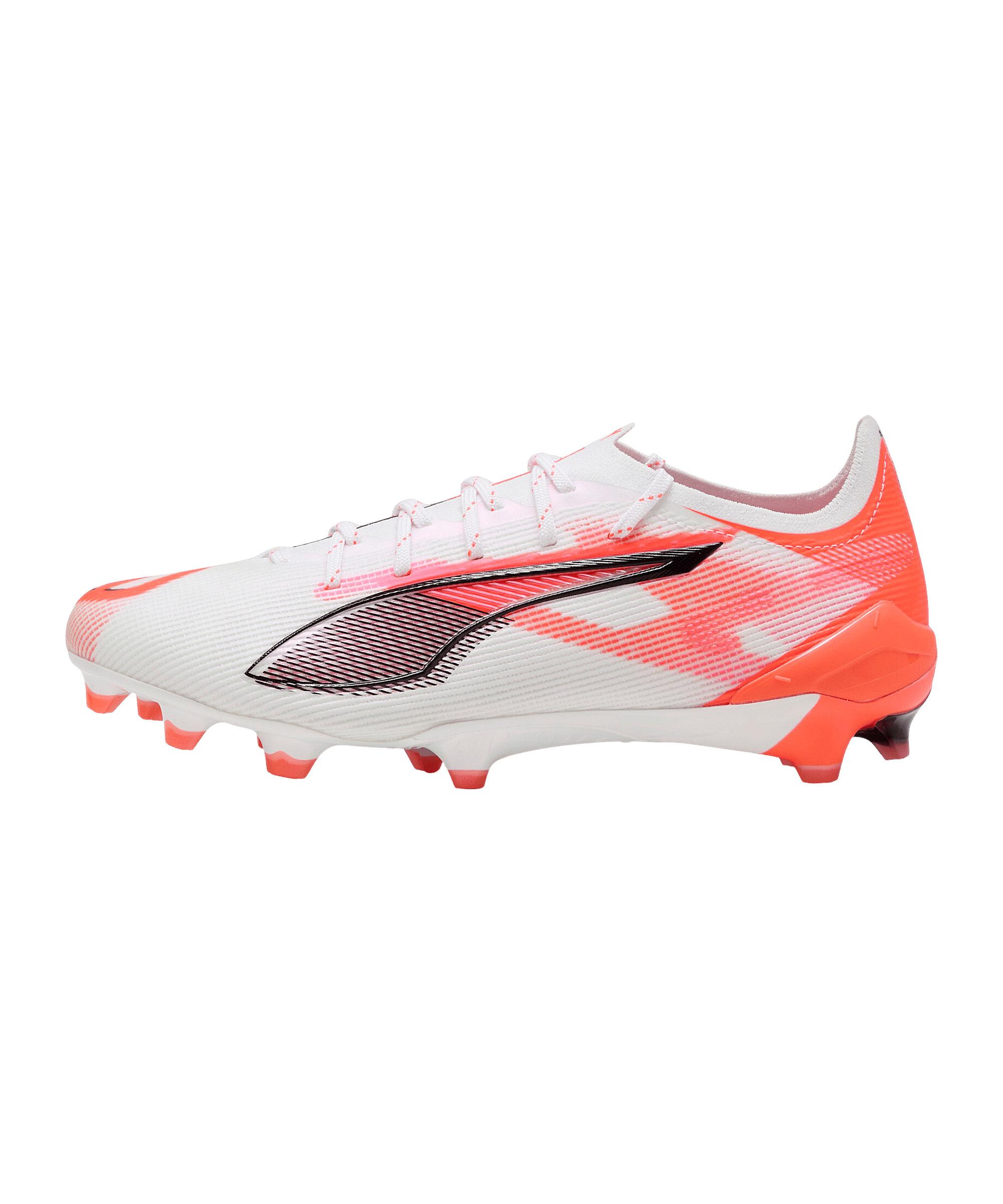 Der flach geschnittene PUMA ULTRA 5 Ultimate FG ist ein schneller Fuszlig;ballschuh fuuml;r Frauen. Die PUMA Rasenfuszlig;ballschuhe sind geeignet fuuml;r festen Naturrasen. Das Topmodell gehouml;rt farblich zum PUMAnbsp;Unlimited Pack. Das macht diesen ULTRA 5 Fuszlig;ballschuh definitiv zu einer schouml;nen Gelegenheit. Schauen wir uns die Boots im Detail an: nbsp; PUMA Top-Fuszlig;ballschuh fuuml;r Damen Das ULTRA 5 Topmodell in Damen-Grouml;szlig;en ist interessant fuuml;r schnelle Spieler-Typen, die Beschleunigung nach vorne suchen. Mit dem PUMA Damen- ULTRA 5 Ultimate Ultimate holst du dir volle Luxus-Ausstattung an deine Fuuml;szlig;e. nbsp; Mit Fit amp; Feel fuuml;r Anspruchsvolle Fuuml;r kompromisslose Performance und hochadaptive Passform hat PUMA das Upper des Ultimate-Modells entsprechend gestaltet: Die extrem leichte, duuml;nne und feinfuuml;hlige Konstruktion mit PWRTAPE SQD-Formskelett, daruuml;ber superleichtes adaptives Premium-Mesh mit einer duuml;nnen GRIPCONTROL PRO Synthetik-Schutzschicht fuuml;r souverauml;ne Highspeed-Ballkontrolle und der knouml;chelfreie Low Cut mit komprimierendem Slipin-Kragen plus extra Komfortpads innen. Nennenswert ist auch die optimierte neue Passform, um noch mehr Fuszlig;typen optimal zu unterstuuml;tzen, machen diesen PUMA ULTRA 5 Fuszlig;ballschuh fuuml;r Frauen zur gefragten Option. nbsp; PUMA ULTRA 5 Ultimate mit Firm Ground-Sohle Mit der Nockensohle fuuml;r festen Naturrasen setzt du deinen Speed optimal um. Die PUMA FG-Sohle aus Performance-Material ist leicht, sehr dynamisch und vielseitig ndash; mit SPEEDSYSTEM -Auszlig;ensohle aus leichtem Hightech PEBA-Polymerkunsstoff fuuml;r hohe Flexibilitauml;t, gute Stabilitauml;t und geschmeidiges Abrollen, innovativen FastTrax-Nocken fuuml;r bissige Sprints, souverauml;ne Dribbles plus uuml;berraschende Stopps und herausnehmbarer dauml;mpfender OrthoLite-Einlegesohle mit Nano-Grip-Beschichtung fuuml;r rutschfesten Halt. Nicht auf Kunstrasen verwenden! Das Nockenmaterial ist auf Naturrasen optimiert und verschleiszlig;t bei der enormen Reibungshitze von synthetischem Rasenimitat. Schnapp dir den PUMA ULTRA 5 Ultimate FG und genieszlig;e den Speed-Faktor. nbsp; Produktdetails: Typ: PUMA Rasenfuszlig;ballschuhe Linie: ULTRA 5 Modell: Ultimate Preisstufe: Topmodell Grouml;szlig;en: fuuml;r Damen Sohle: FG (Firm Ground) Einsatzbereich: fuuml;r festen Naturrasen Kragenschnitt: flach (Low Cut) Material: Nachhaltiges Produkt: mit recycelten Materialien hergestellt Obermaterial: Textil, Synthetik Innenfutter: Textil Laufsohle: Sonstiges Material
