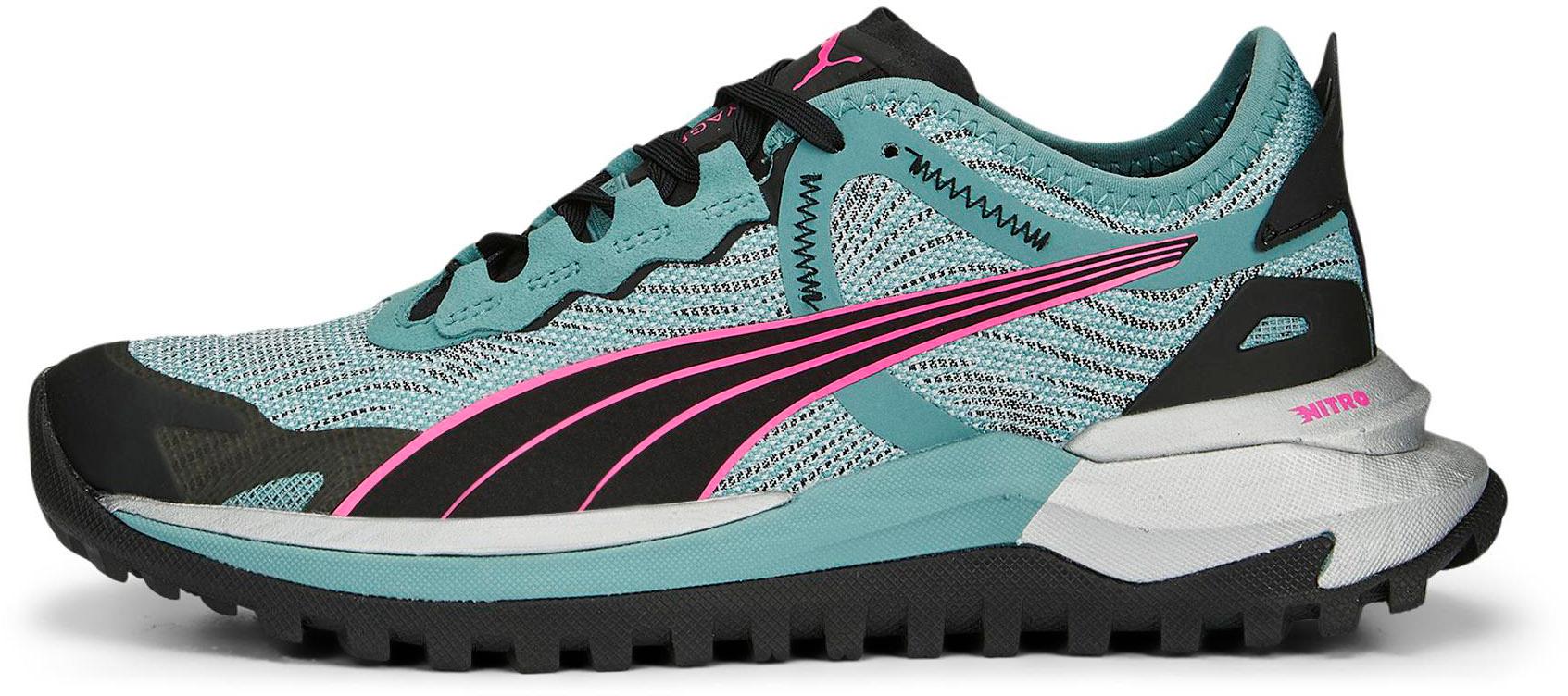 Funktionale Trailrunningschuhe für Damen, mit adaptiven Passformsystem für sicheren Halt und hoher Stabilität; atmungsaktives Mesh-Obermaterial mit stabilisierenden Overlays; die innovative Schnürung sorgt zusätzlich für eine feste, personalisierbare Anpassung an den Fuß; Zwischensohle mit extra leichtem ProFoamLite EVA-Schaumstoff, um das Auftreten optimal abzufedern; strapazierfähige PumaGrip ATR-Außensohle für bessere Traktion auf Eis, Schlamm und losem Untergrund; Sprengung: 8 mm; geeignet für Normalpronierer.
