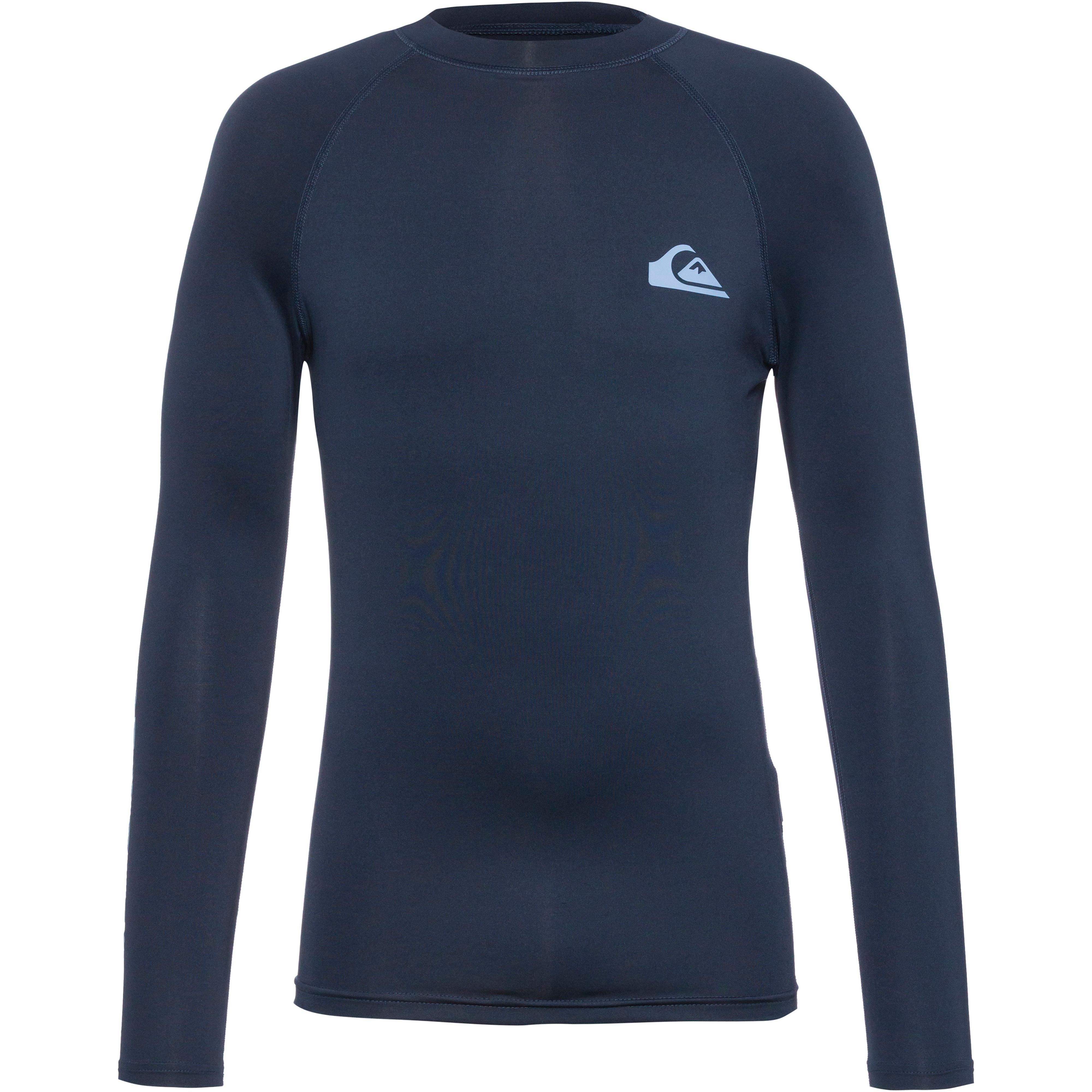 Langärmeliges Surfshirt mit UPF 50+; chlorresistentes und feuchtigkeitsableitendes Material mit flachen, reibungsarmen Nähten; schmaler Stehkragen; Raglanärmel für optimale Bewegungsfreiheit; Markendetail im Brustbereich; Material 84% Polyester (recycelt), 16% Elastan.