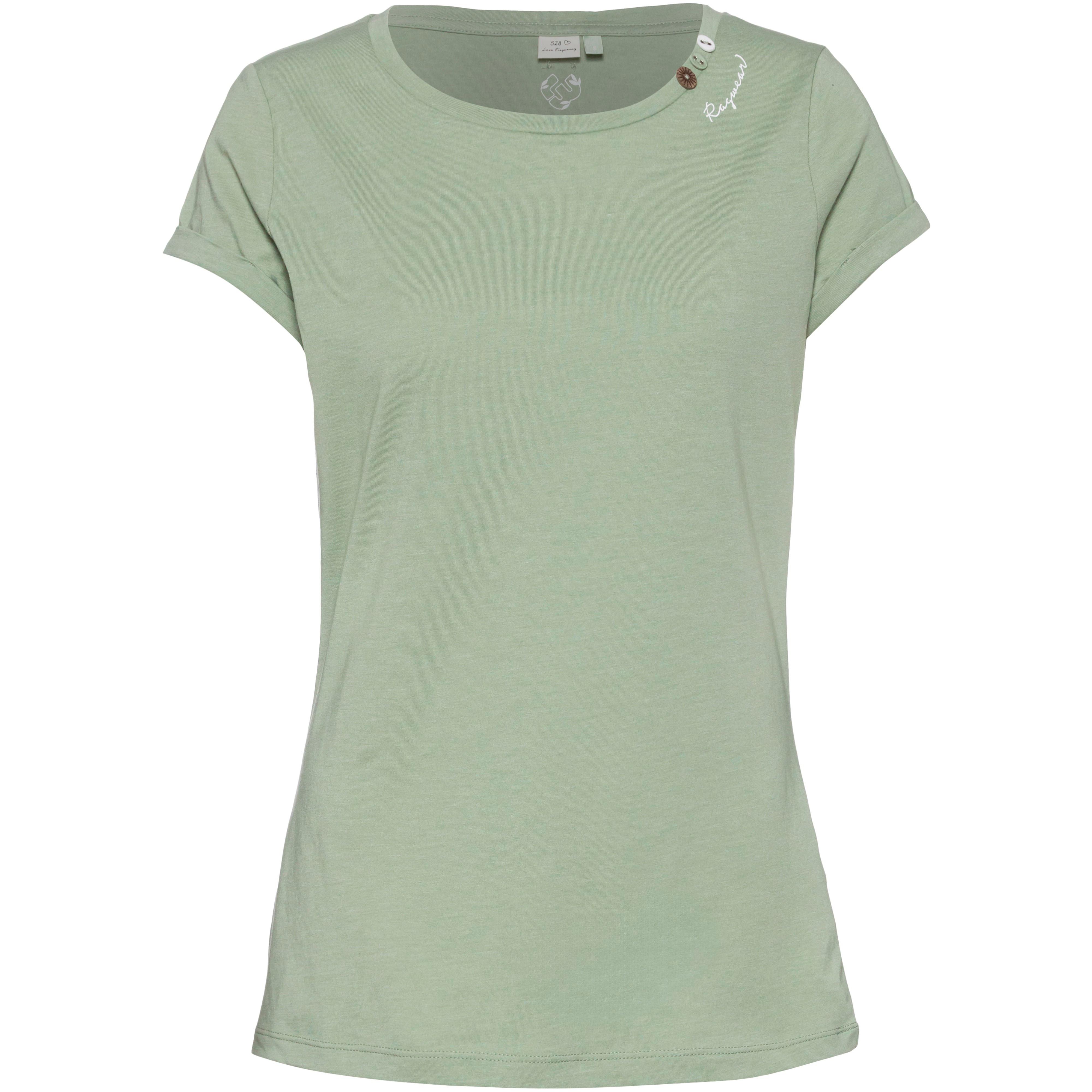 Veganes, nachhaltig hergestelltes T-Shirt aus weichem Jersey-Material; weiter Rundhalsausschnitt mit Zierknöpfen und dezentem Markenprint; kurze, angeschnittene Ärmel mit Umschlag; umweltfreundlich mit Repreve®-Performance-Fasern aus recycelten Plastikflaschen; Material 50% Baumwolle (Biobaumwolle), 50% Polyester (recycelt).