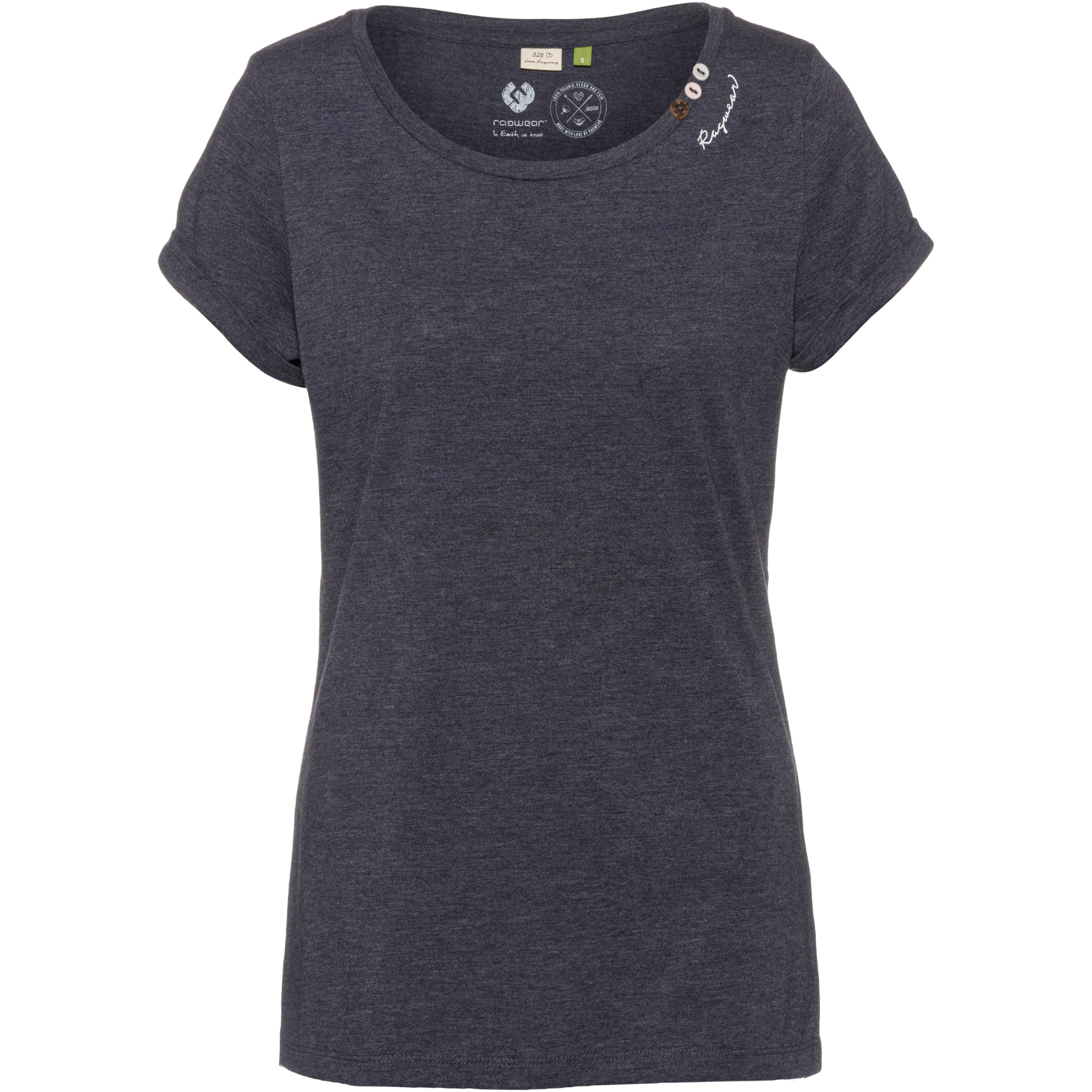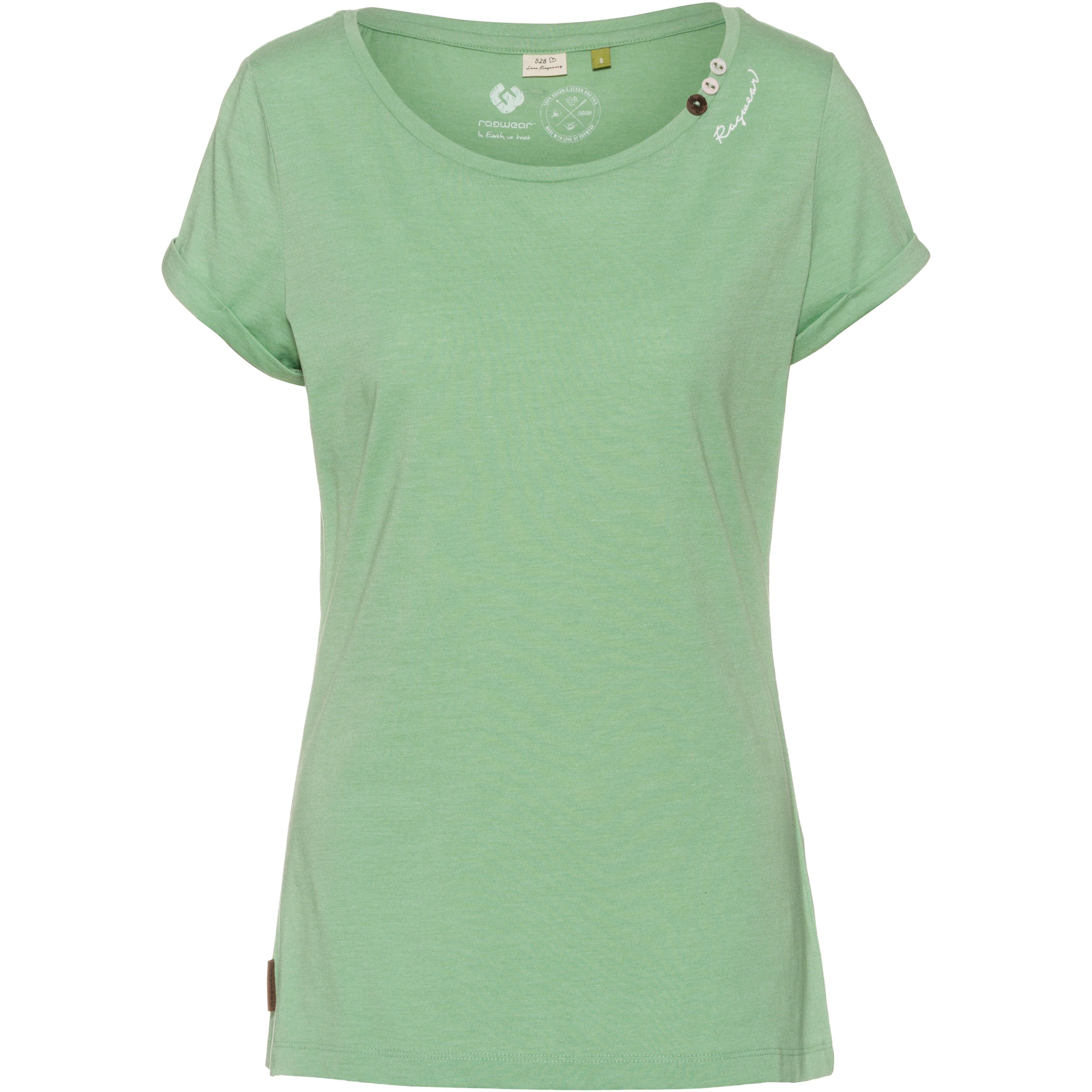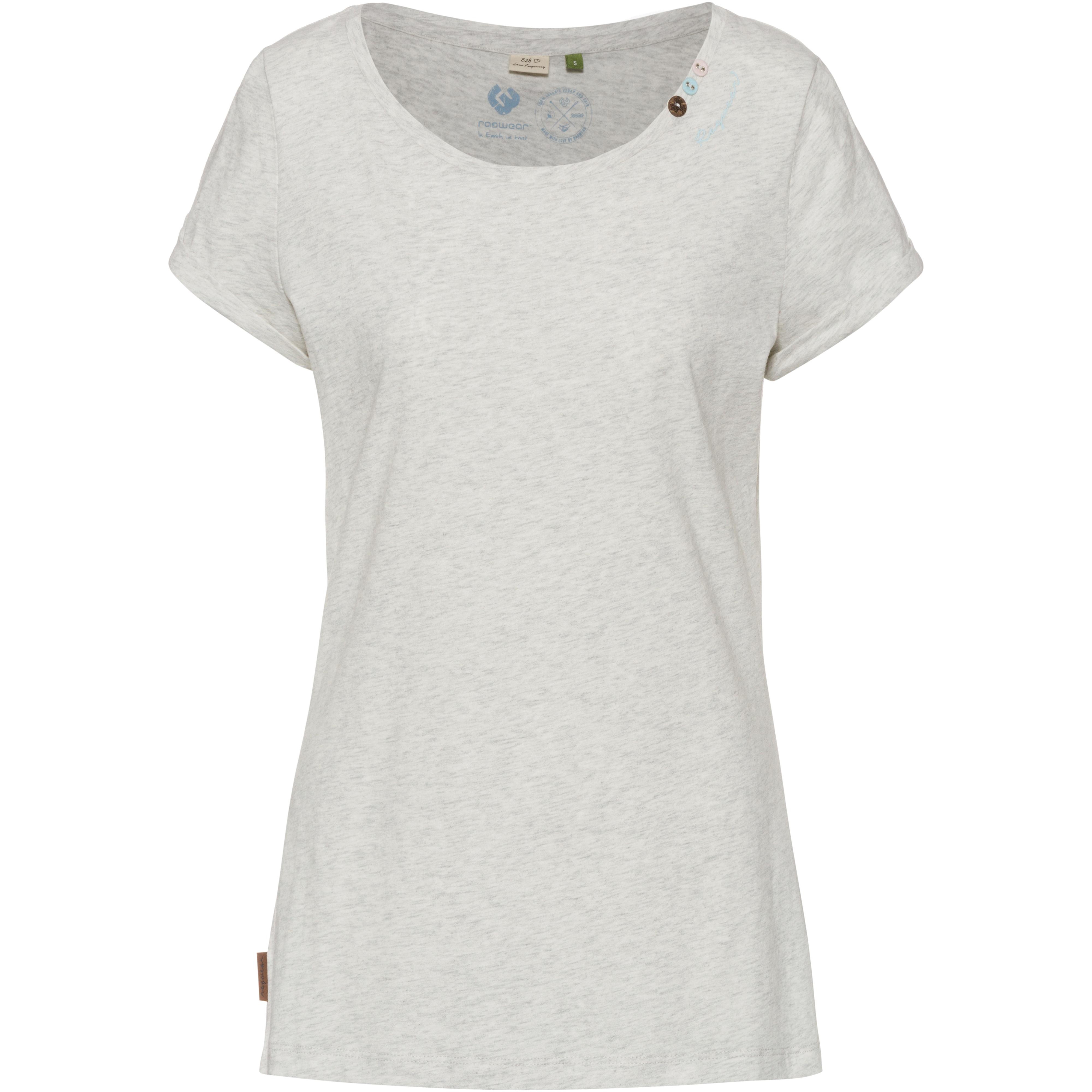 Ragwear FLORAH A ORGANIC. Umweltfreundlich hergestelltes T-Shirt mit geripptem Rundhalsausschnitt und Nackenband; umgekrempelter Ärmelabschluss; gerader Saum; Melange-Optik; Logo-Detail; Material 50% Baumwolle (Bio), 50% Polyester (recycelt).