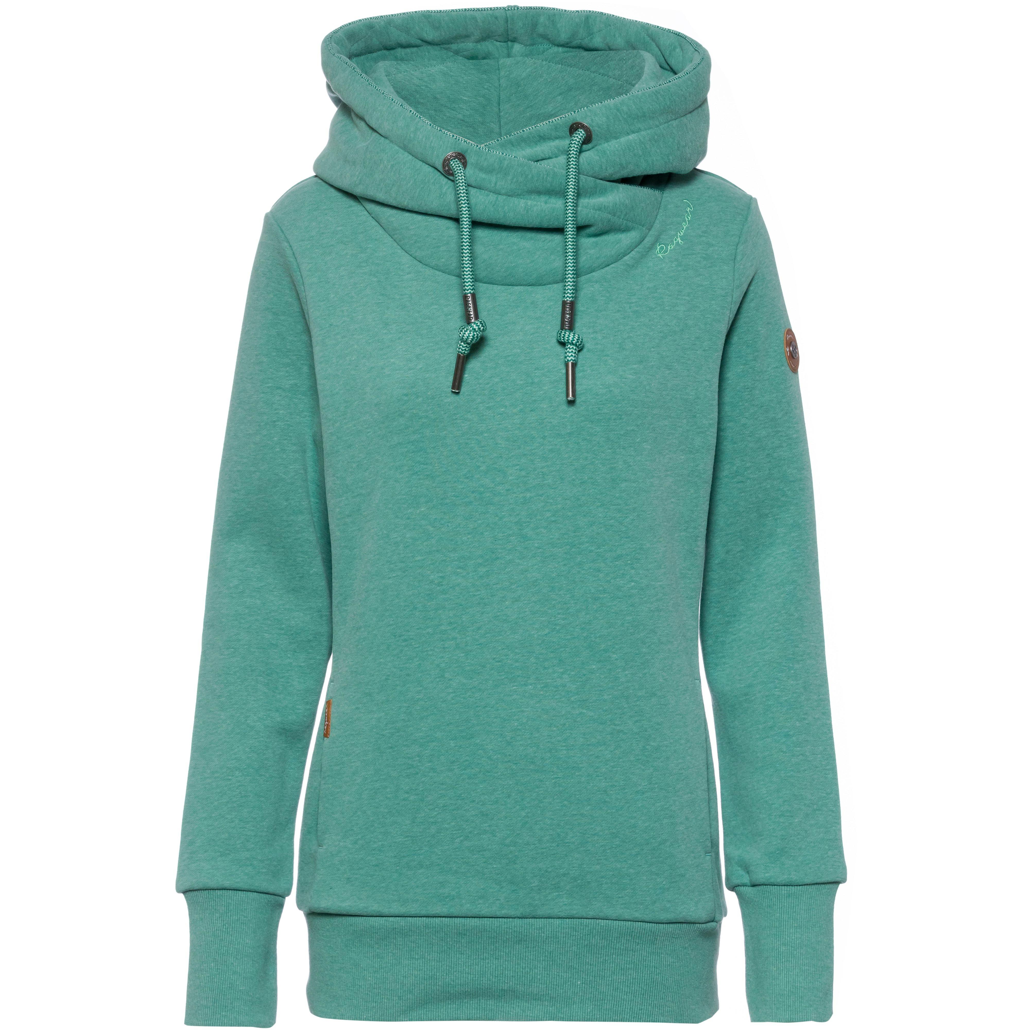 Wärmender Hoodie mit flauschiger Innenseite; geräumige Kapuze mit robustem Kordelzug; Schalkragen in Wickeloptik sorgt für angenehmen Tragekomfort und hält Hals-und Nackenbereich schön warm; diverse Markendetails; 2 seitliche Eingriffstaschen; Arm-und Saumabschluss mit Rippbündchen; vegan; Material 70% Baumwolle, 30% Polyester.
