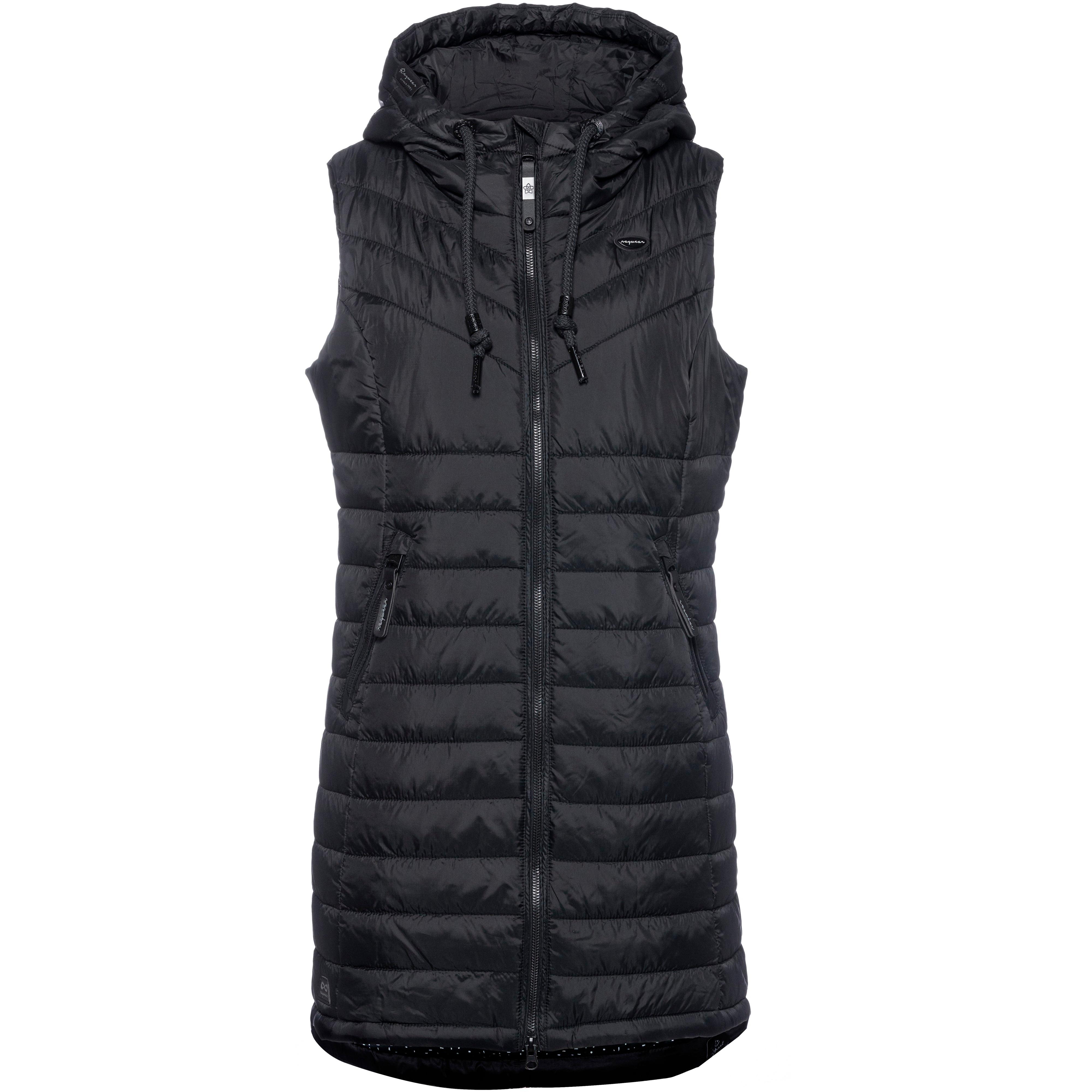 Wärmende Longweste aus veganem Material; geräumige Kapuze mit Kordelzug; kleiner Stehkragen zum Schutz von Hals-und Nackenbereich; durchgehender Frontreißverschluss mit Kinnschutz; seitliche Reißverschlusstaschen; leicht verlängerter Rückensaum sorgt für optimale Körperanpassung; diverse Markendetails; Material 100% Polyester.