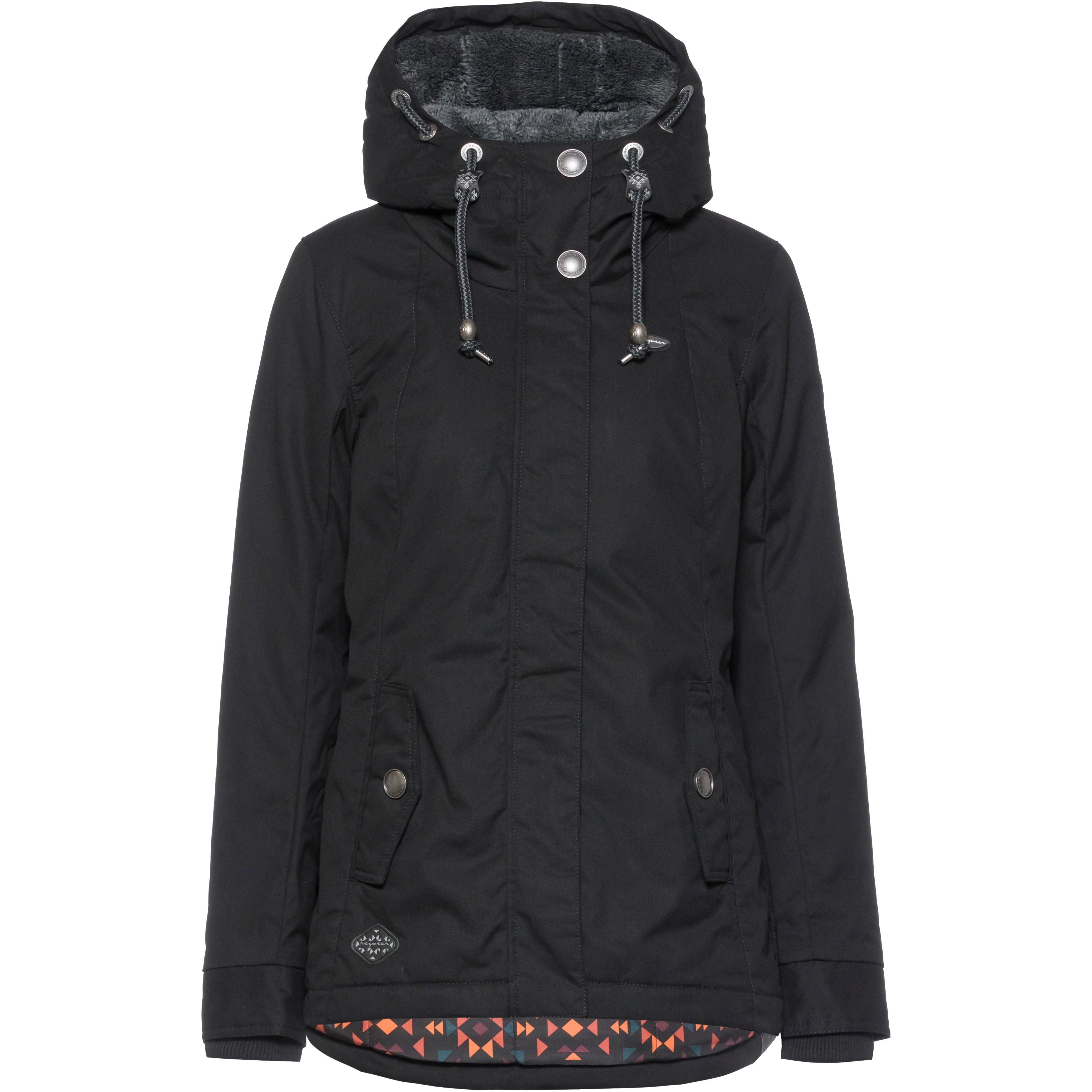 Kapuzenjacke mit wärmeisolierender Wattierung; Kapuze mit Kordelzug und weichen Teddyfutter; hinterlegter und mit Druckknopfleiste verdeckter Frontreißverschluss; Armabschlüsse mit integrierten Cuffs; Fronttaschen mit Klappen und Druckknöpfen; Kunstlederdetails; 1 Innentasche mit Reißverschluss; veganes Produkt; Obermaterial 65% Polyester, 35% Baumwolle, Futter 100% Polyester, Wattierung 100% Polyester.