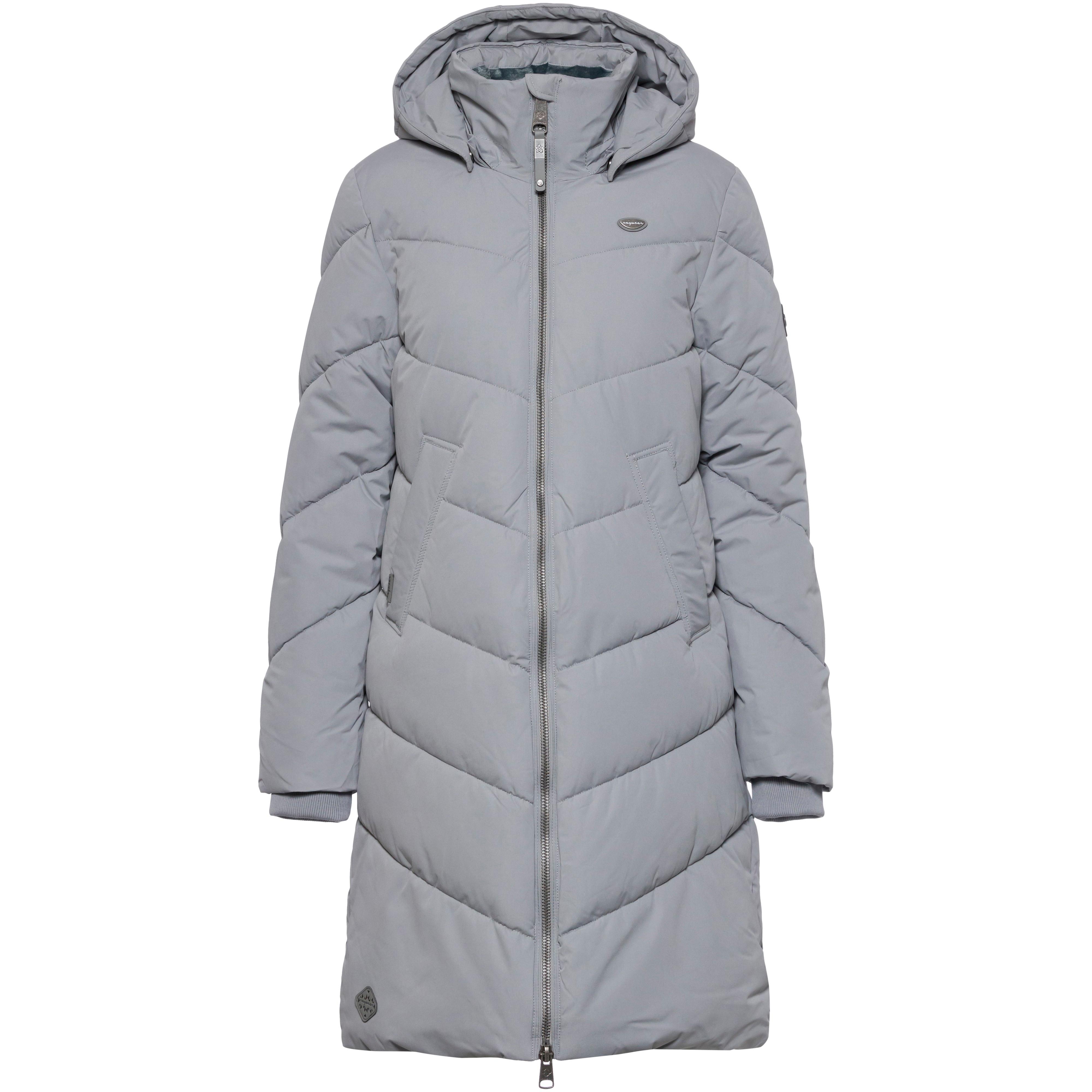 Langer, warm wattierter Steppmantel; wind- und wasserabweisendes, sowie atmungsaktives Gewebe mit einer Wassersäule von 8.000 mm; abnehmbare Kapuze; Stehkragen mit Kinnschutz; hinterlegter 2-Wege-Frontreißverschluss; Armabschlüsse mit integrierten Cuffs; 2 Seitentaschen mit Druckknöpfen; veganes Produkt; Obermaterial 100% Polyester, Futter 100% Polyester, Wattierung 100% Polyester.