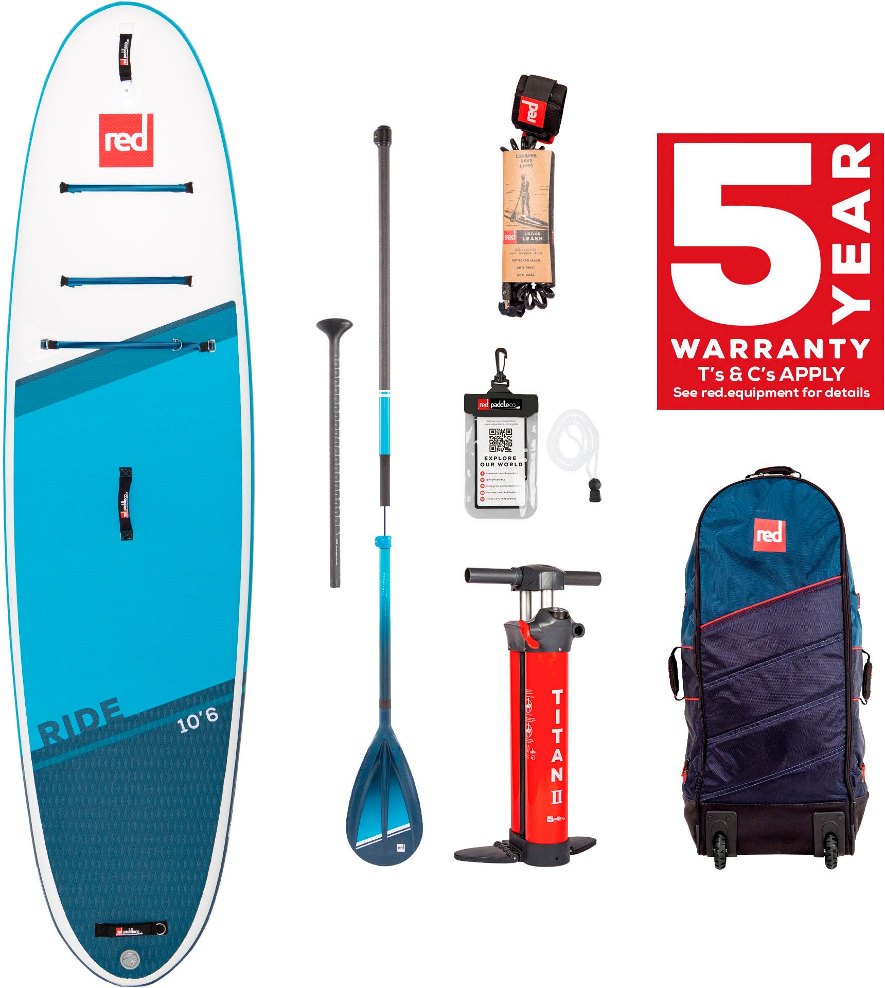 SUP-Set bestehend aus Board, Paddel, Pumpe, Leash und Rucksack; aufblasbares Allrounder-Board für Fahrten auf dem See oder auf dem Meer; mit einer Dicke von 120 mm ist es enorm steif und bietet eine kompromisslose Performance; kompakte Außenverstärkung; Tailpad- Heck mit Diamantschnitt für besseren Grip; griffiges Deckpad aus EVA; Leash-Punkt zum sicheren Anbringen der Leash; Gepäcksystem mit 6-Punkt-Spanngurten; ergonomische, röhrenförmige Griffe für komfortables Tragen; 3-teiliges Paddel; Titan II-Pumpe; Reparatur-Set; wasserdichte Handyhülle; Leash; wasserabweisender All-Terrain-Rucksack mit innovativem Gurt-Tragesystem und Rollen; Maße (L/B/H): ca. 10'6'' (319 cm) x 32'' (81 cm) x 4,7'' (12 cm); Volumen: ca. 245 l; Gewicht: ca. 11,1 kg; belastbar bis 110 kg.