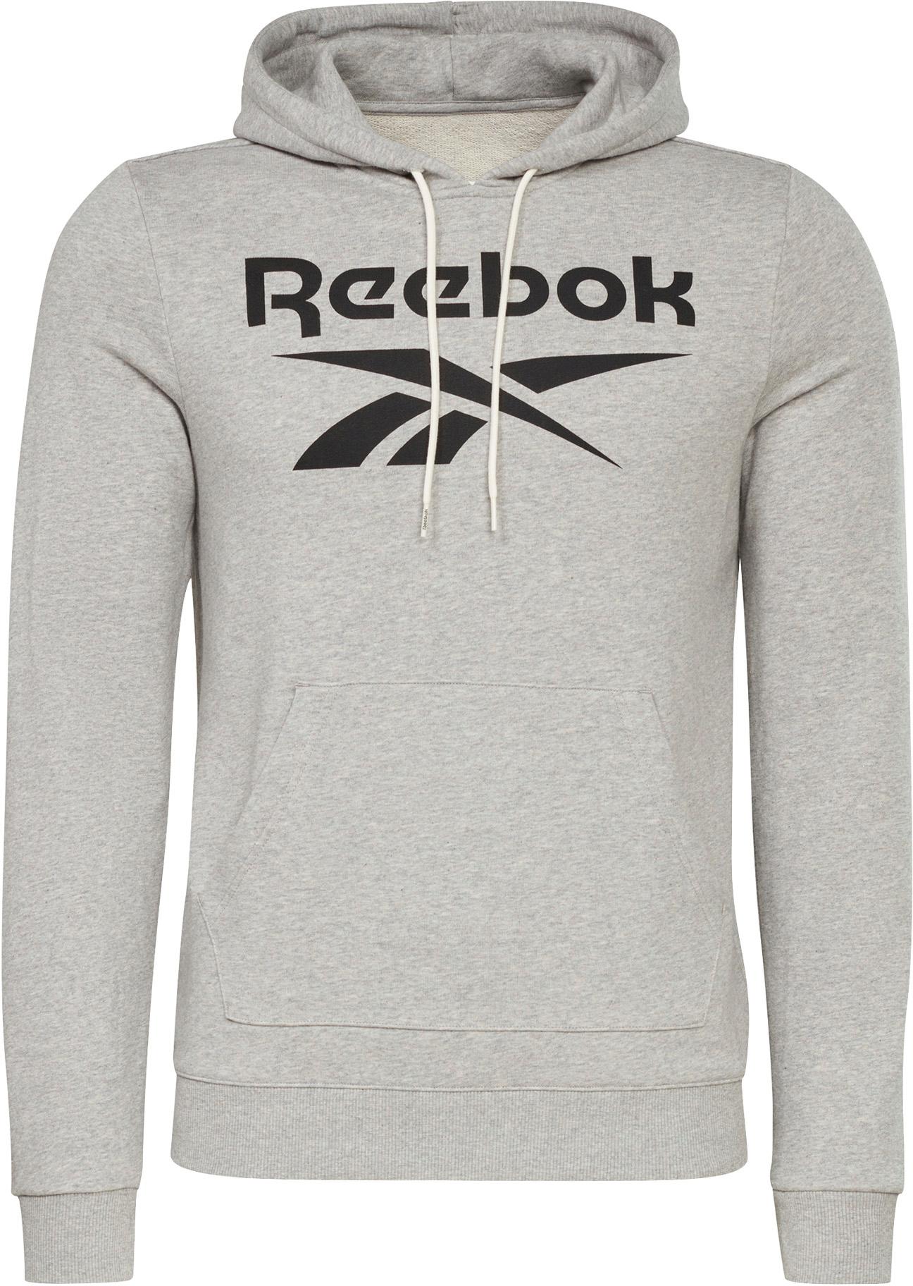 Hoodie in Melange-Optik mit großem Labelprint auf der Vorderseite; Kapuze mit Kordelzug; Kängurutasche; Rippbündchen an den Abschlüssen; Material 80% Baumwolle, 20% Polyester.