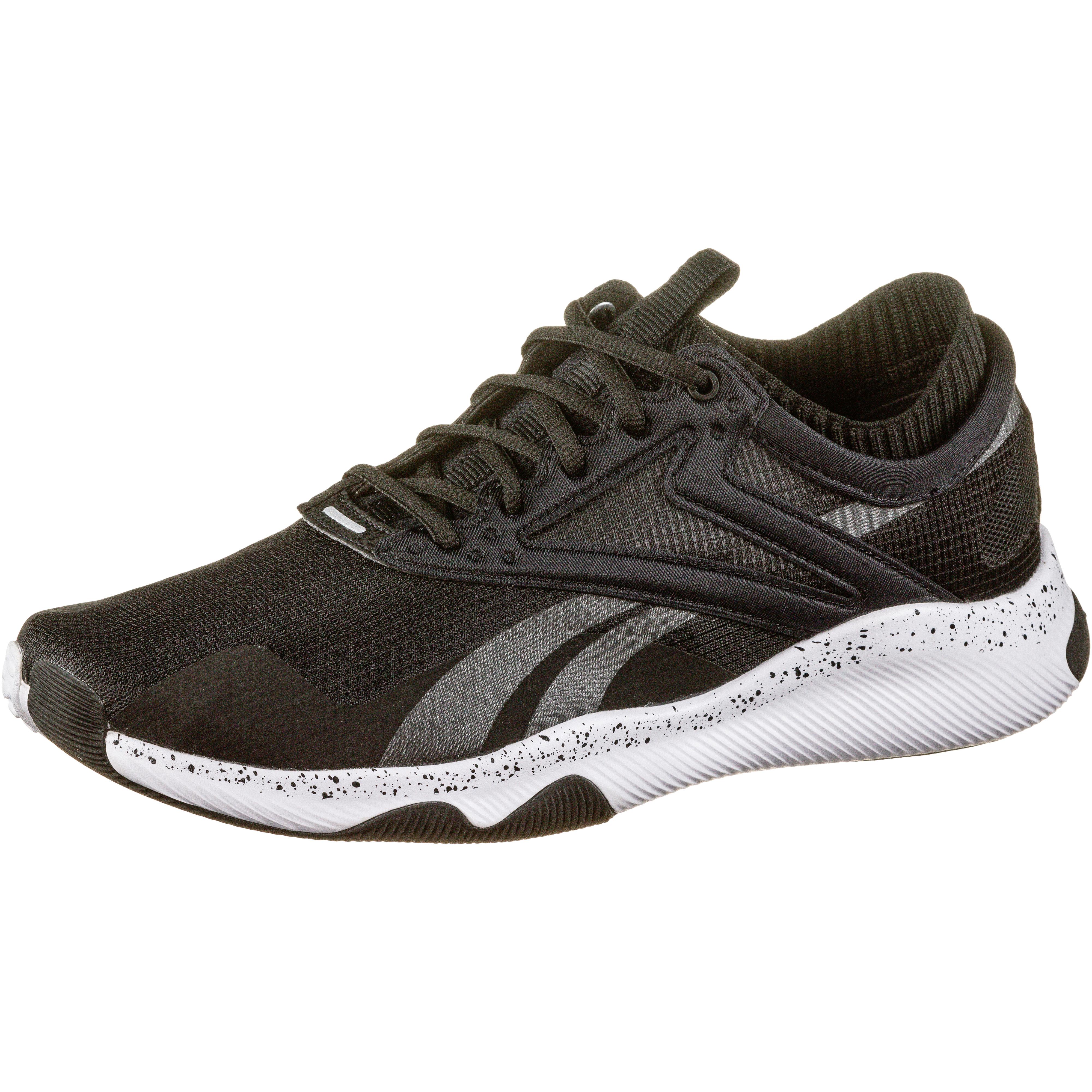 Reebok HIT. Vielseitige Fitnessschuhe aus atmungsaktivem Mesh-Obermaterial mit sockenähnlicher Innenschuh-Konstruktion; verstärkter Schnürbereich; herausnehmbare Einlegesohle; dämpfende EVA-Zwischensohle für Stoßabsorption und Komfort; Obermaterial aus Textil; Innensohle aus Synthetik; rutschfeste Gummi-Außensohle mit Flexkerben.