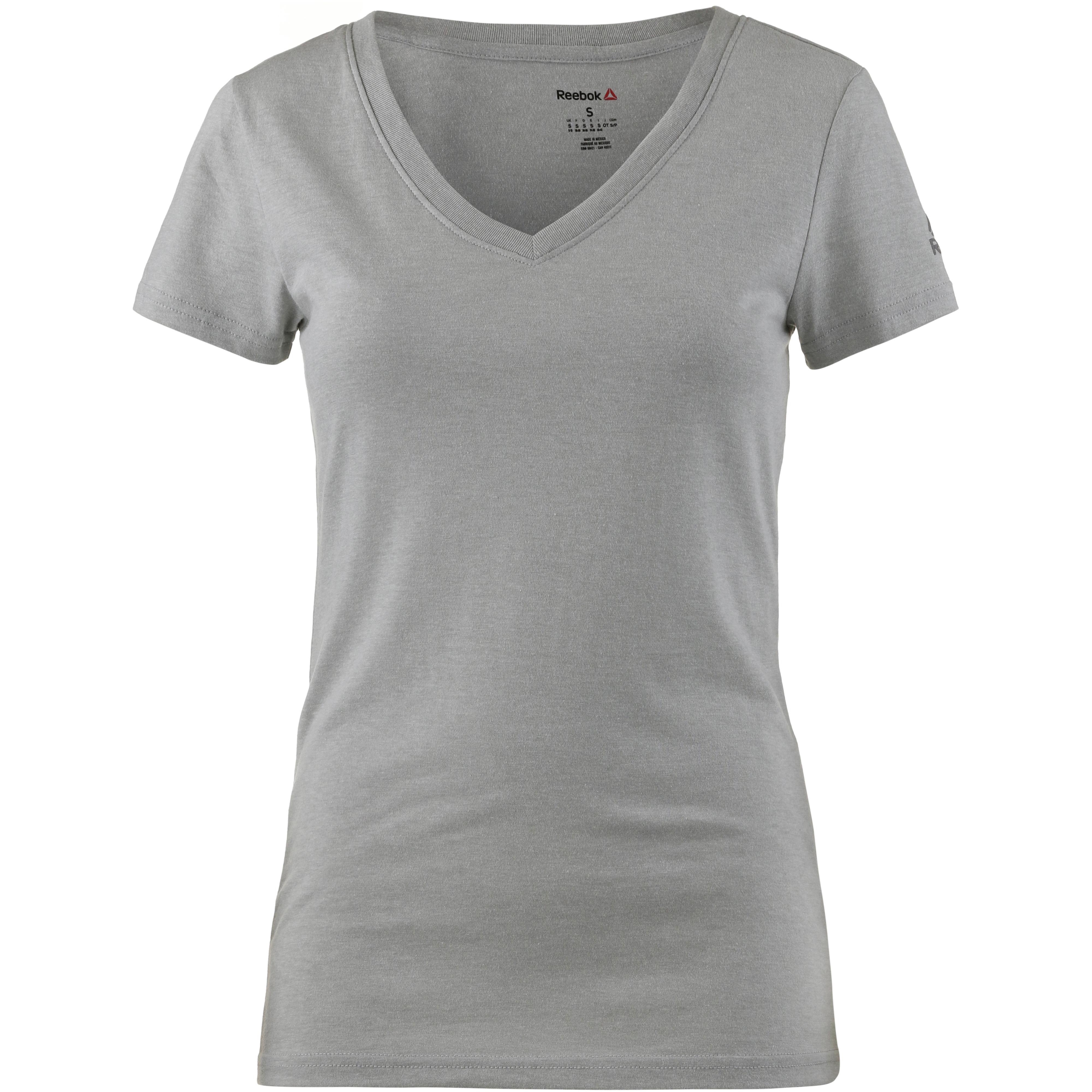 Reebok T-Shirt mit tiefem V-Ausschnitt und körperbetonter Passform; Material 50% Polyester, 25% Viskose, 25% Baumwolle.