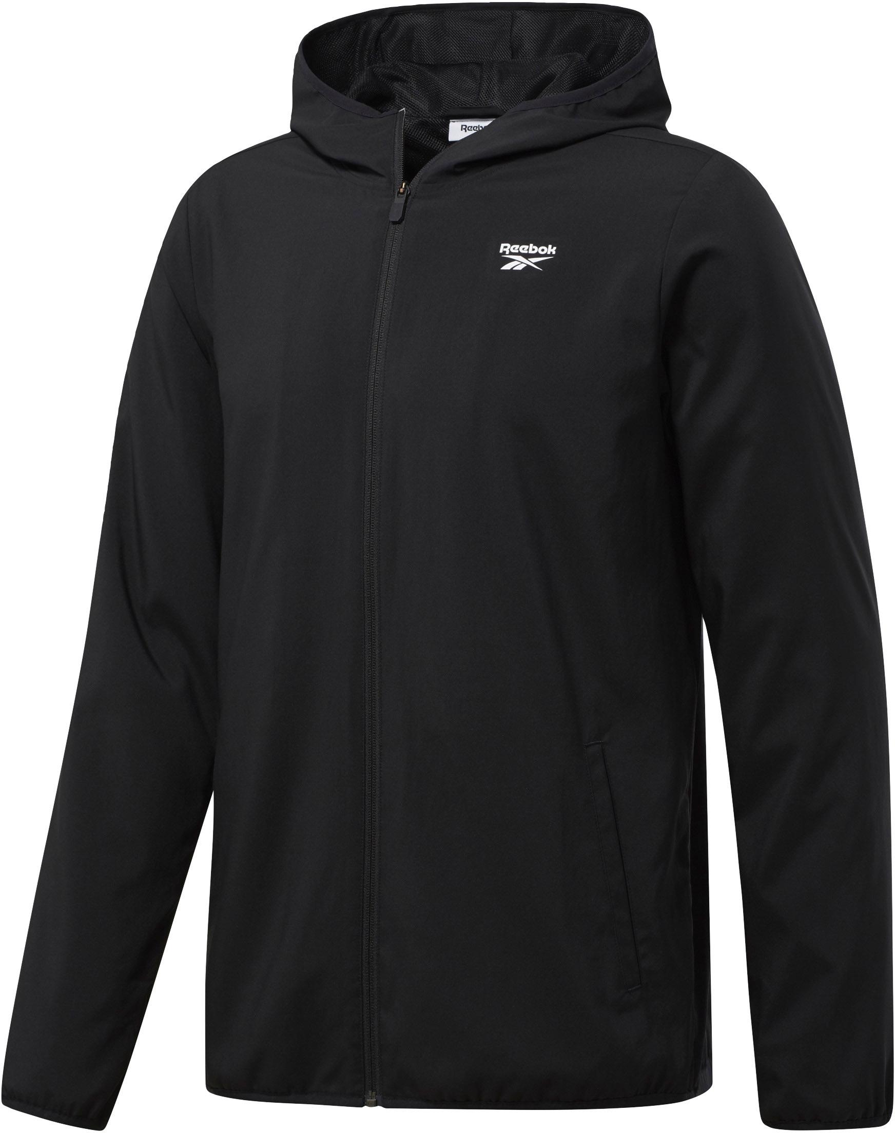 Leichte Trainingsjacke mit cleanem Design; ideal für Lagenlooks; feste Kapuze mit Meshfutter; hochabschließender Kragen; durchgehender Reißverschluss; seitliche Eingrifftaschen; Logodetail; elastische Abschlüsse; normale Passform; Material 100% Polyester.