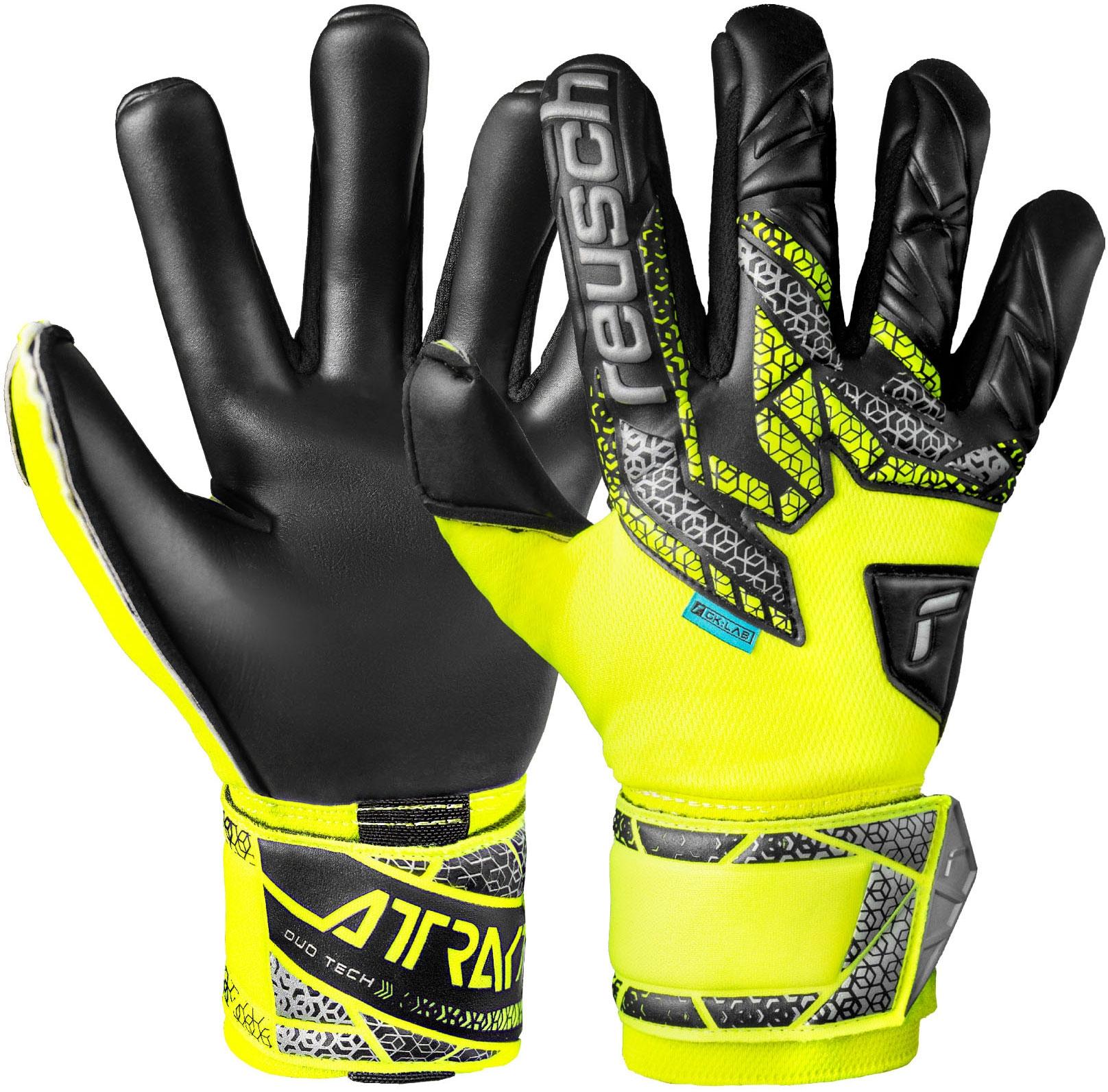 Der Reusch Attrakt Duo ist der perfekte Begleiter für absolute Spitzenleistungen im Tor. Dank der innovativen Grip Duo Technologie bietet der extrem griffige Grip Gold Haftschaum nicht nur hervorragenden Grip, sondern dank der dreidimensionalen Latexnoppen auf der Innenseite auch maximale Ballkontrolle und verhindert, dass deine Hand im Handschuh verrutscht. Der gerollte Belag an den Fingerspitzen und die Innennahtkonstruktion sorgen für eine besonders enge Passform, die dir bei jeder Parade ein präzises und sicheres Gefühl vermittelt. Gleichzeitig sorgt das hoch atmungsaktive Mesh-Material für optimale Belüftung, damit du auch bei intensiven Spielen einen kühlen Kopf behältst. Der anatomisch vorgeformte Schnitt unterstützt die natürliche Fanghaltung deiner Hände, während die gerollte Daumenkonstruktion und der Latex-Handrücken für erstklassigen Komfort und eine vergrößerte Fangfläche sorgen. Mit diesem Handschuh dominierst du das Spiel - schnapp ihn dir und sei der Held im Tor!