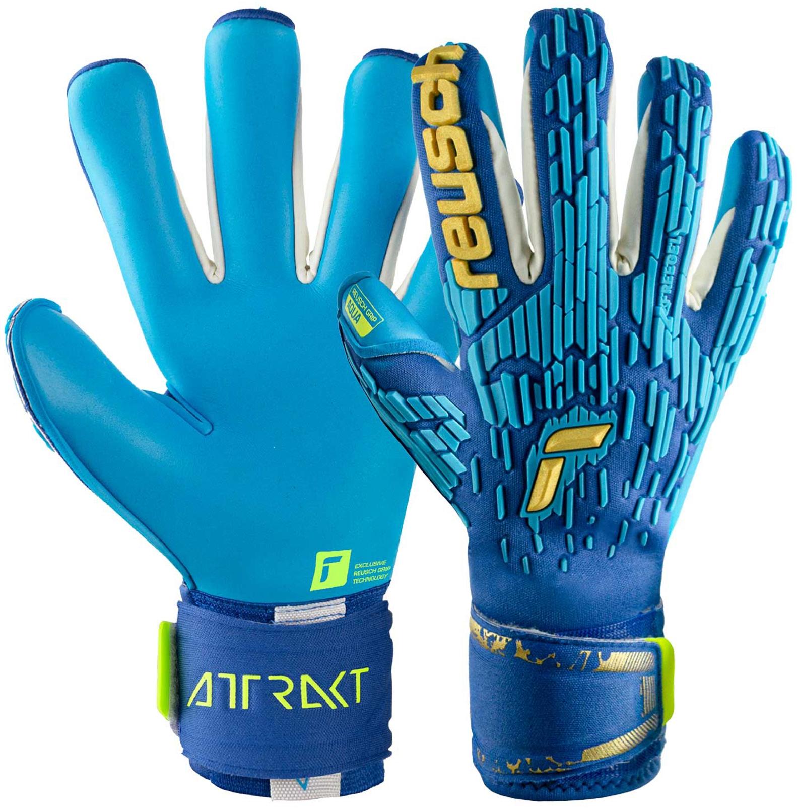 Der Reusch Attrakt Freegel Aqua Windproof bietet mit dem Reusch Grip Aqua dank einzigartiger Latexzusammensetzung und exklusiver Hydrograin-Partikel hervorragenden Grip bei trockenen und vor allem nassen Bedingungen. Dadurch eignet er sich perfekt für Einsätze bei Regen und bietet auch unter diesen Umständen eine hervorragende Griffigkeit. Die Latex Gussets sorgen für noch mehr Grip und eine perfekte Ballkontrolle. Beim Evolution Negative Cut rollt sich der Belag um die Fingerspitzen und generiert dabei eine enge Passform und größtmögliche Kontaktfläche zwischen Latex und Ball für beste Ballkontrolle. Eine Innennahtkonstruktion im unteren Fingerbereich sorgt für eine sehr enge, flexible und anatomische Form. Die extrem leichte und widerstandsfähige Faustzone aus silikonartigem Obermaterial sorgt für eine robuste und gleichzeitig sehr flexible Rückhand. Die Neopren-Rückhand wurde hier komplett bis zum Abschluss des Handschuhes gezogen und mit einem in alle Richtungen elastischen Textil auf der Handgelenks-Innenseite vernäht. Dadurch wird das Handgelenk stabilisiert und der Tragekomfort garantiert. Der anatomisch vorgeformte Schnitt des Handschuhs und die leichte Vorspreizung der Finger unterstützen die natürliche Fanghaltung der Hände. Die gerollte Konstruktion zwischen Daumen und Zeigefinger verhindert störende Nähte und verbessert die Passform und den Tragekomfort. Der Belag dehnt sich über die Innenseite des Daumens nahezu bis auf den Handrücken aus. Die Fangfläche wird so deutlich vergrößert und der Daumen bekommt eine funktionale 3D-Passform. Der Handschuh ist durch das Neopren-Basismaterial sehr flexibel. Außerdem ermöglicht die Neopren Lasche ein präzises befestigen der Handschuhe am Handgelenk.
