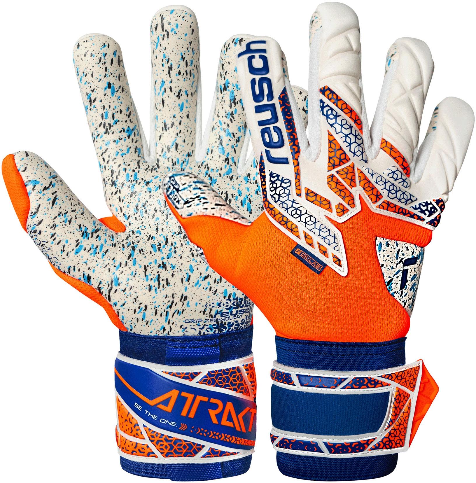 Reusch Attrakt Fusion - Maximale Leistung für dein Tor! Setze auf die Wahl von Profis wie Meret und Szczęsny! Der Reusch Grip Fusion bietet dir überragenden Grip und hohe Abriebfestigkeit - egal bei welchem Wetter und auf welchem Untergrund. Die enge Passform und die vergrößerte Latex-Ball-Kontaktfläche garantieren dir ultimative Ballkontrolle. Die Innennahtkonstruktion sorgt für eine anatomische, flexible Passform, während die gerollte Daumenkonstruktion störende Nähte vermeidet und den Tragekomfort erhöht. Das hoch atmungsaktive Mesh-Material sorgt für eine optimale Luftzirkulation im Handschuh. Der anatomisch vorgeformte Schnitt mit leichter Fingerspreizung unterstützt Deine natürliche Griffhaltung. Mit der Latex-Rückhand und der vergrößerten Fangfläche bist Du bestens gerüstet, um jeden Ball sicher zu halten. Hol Dir den Reusch Attrakt Fusion und verteidige Dein Tor wie ein Profi!