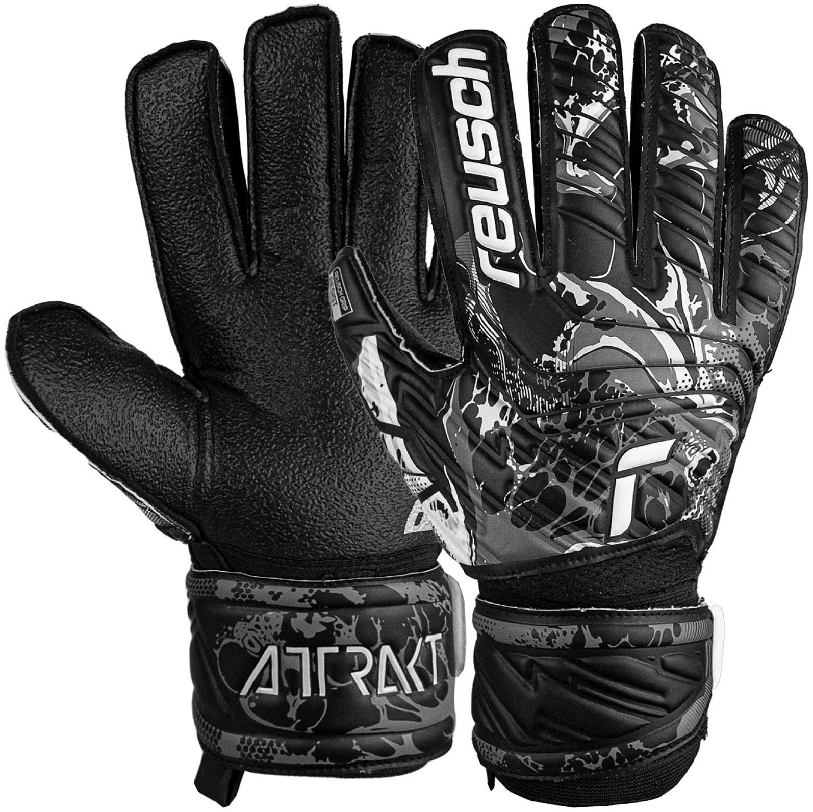 Der Attrakt Resist Junior Torwarthandschuh von Reusch ist die perfekte Wahl für alle Nachwuchstorhüter. Der verarbeitete Reusch Grip Belag ist ein hochwertiger Haftschaum und garantiert dank seines hohen Anteils an hochwertigem Naturlatex gute Griffigkeit und zuverlässige Haltbarkeit. Das strapazierfähige Latex mit rauer Oberfläche ist perfekt für den Einsatz auf künstlichen und harten Böden geeignet. Die Expanse-Cut-Außennahtkonstruktion dieses Regular Cuts maximiert die Fläche für den Ballkontakt und erhöht die Fangsicherheit. Die vertikale Öffnung an der Innenseite der Stulpe sorgt für einen kinderleichten und schnellen Einstieg in den Handschuh. Der Einschnitt der Handfläche zwischen Daumen und Zeigefinger optimiert die Flexibilität des Daumens und sorgt für eine ergonomische Form. Der Handschuh ist aufgrund der ideal aufeinander abgestimmten Materialzusammensetzung sehr atmungsaktiv. Der Handschuh ist für den Einsatz auf künstlichen und harten Böden entwickelt worden und perfekt für den Spielbetrieb aller Torhüter im Amateurbereich geeignet. Die vollständig umlaufende Bandage ist ein bewährtes Befestigungssystem für maximale Stabilität und super Tragekomfort.
