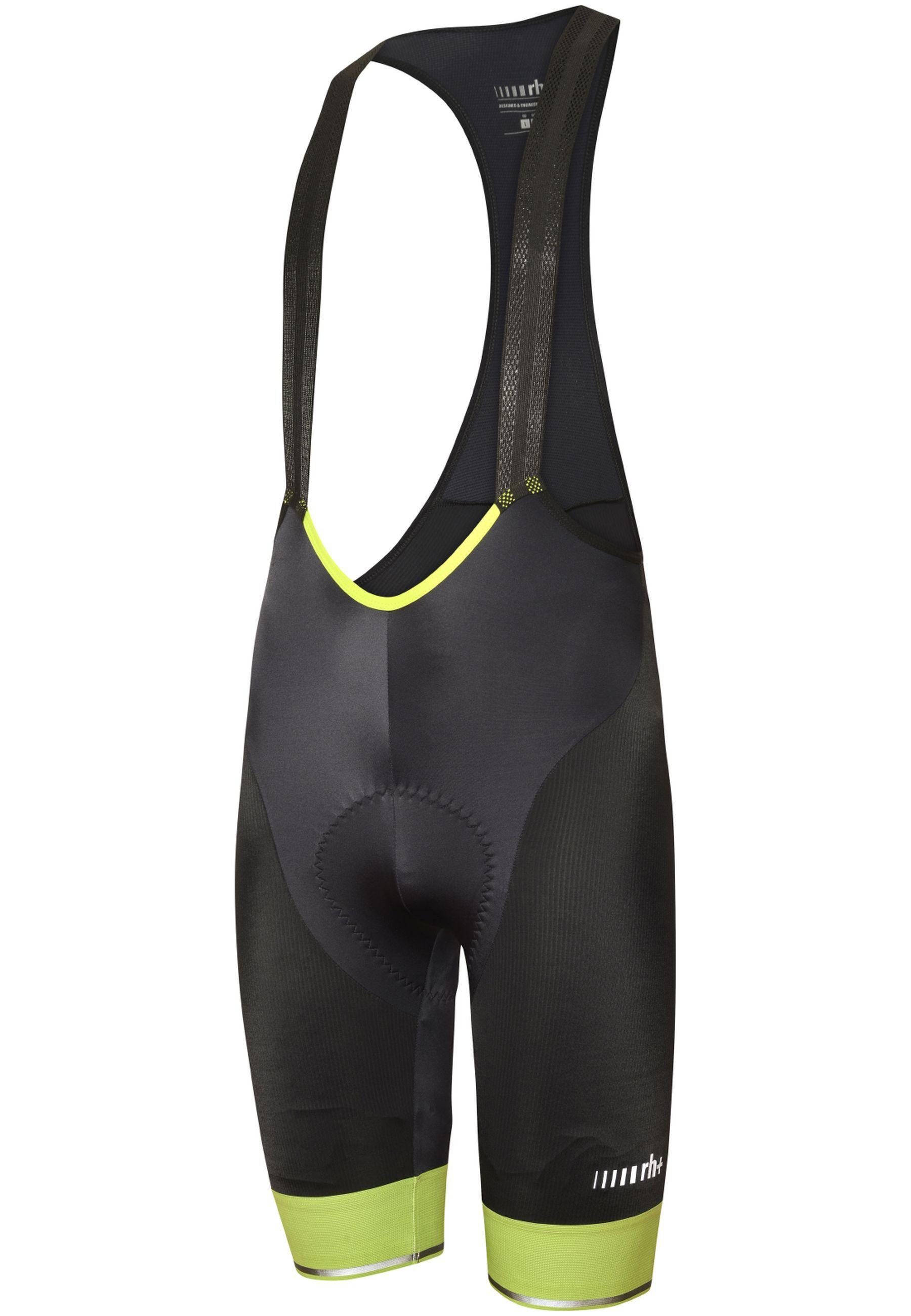 Die RH+ Logo Evo Bibshort für Herren ist leicht und bequem und mit dem Summus-Pad von Elastic Interface ausgestattet. Es besteht aus dem neuen biomorphen, mikrofrischen und adaptiven Stretch mit Front-V-Konstruktion für besseren Komfort. Die Hose ist leicht und kommt mit einer optimalen Kompressionsrate, um die Beinmuskulatur während der Anstrengung zu unterstützen. Strukturiertes, abriebfestes und biomorphes Techno-Stretch-Gewebe befindet sich an den Seiten. Der Beinabschluss ist 7cm hoch und perforiert, um auch an den heißesten Tagen atmungsaktiv zu sein. Die Hose hat ein rutschfestes Innensilikon für beste Passform während der Fahrt.