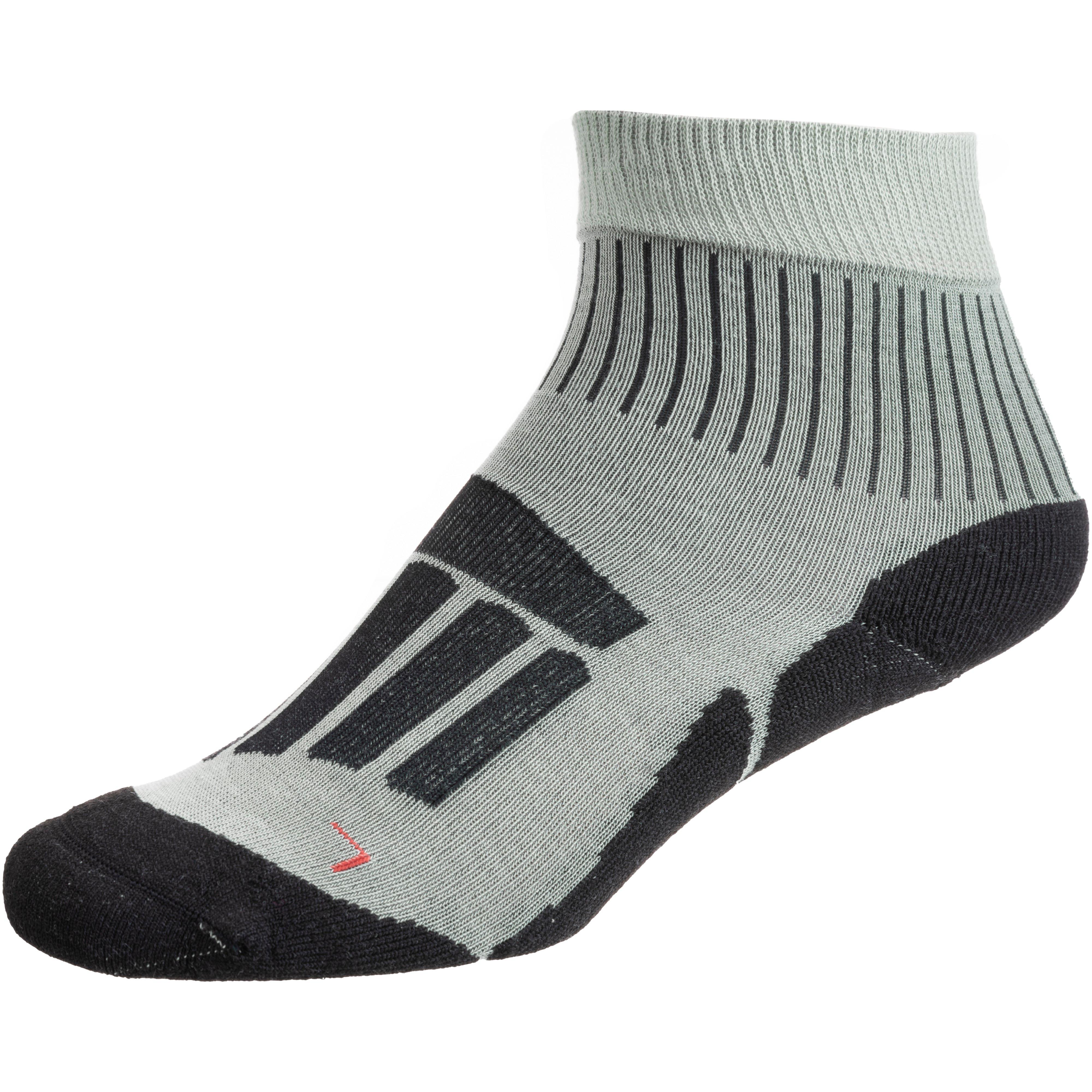 Funktionale Wandersocken mit feuchtigkeitsregulierenden und antibakteriellen Eigenschaften; anatomische Fußanpassung; flache Zehennaht für reibungsarmen Tragekomfort; spezielle Polsterung schützt vor Druckstellen am Rist; Plüsch im Fußbereich für optimale Dämpfung; optimal geeignet für Schuhe mit Membranfutter; Material 34% Polyamid, 28% Baumwolle, 25% Polypropylen, 12% Smartcel Sensitive, 1% Elastan.