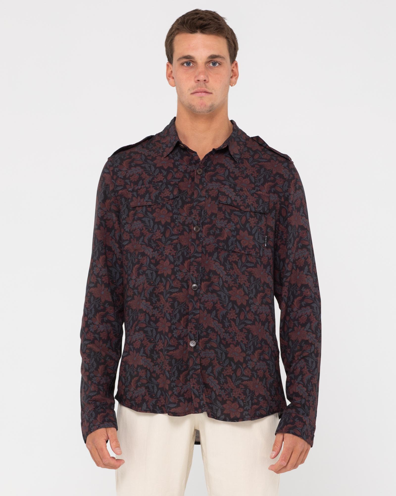 RUSTY DARK BATIK UTILITY LONG SLEEVE SHIRT Langarmhemd Herren Ruby Wine