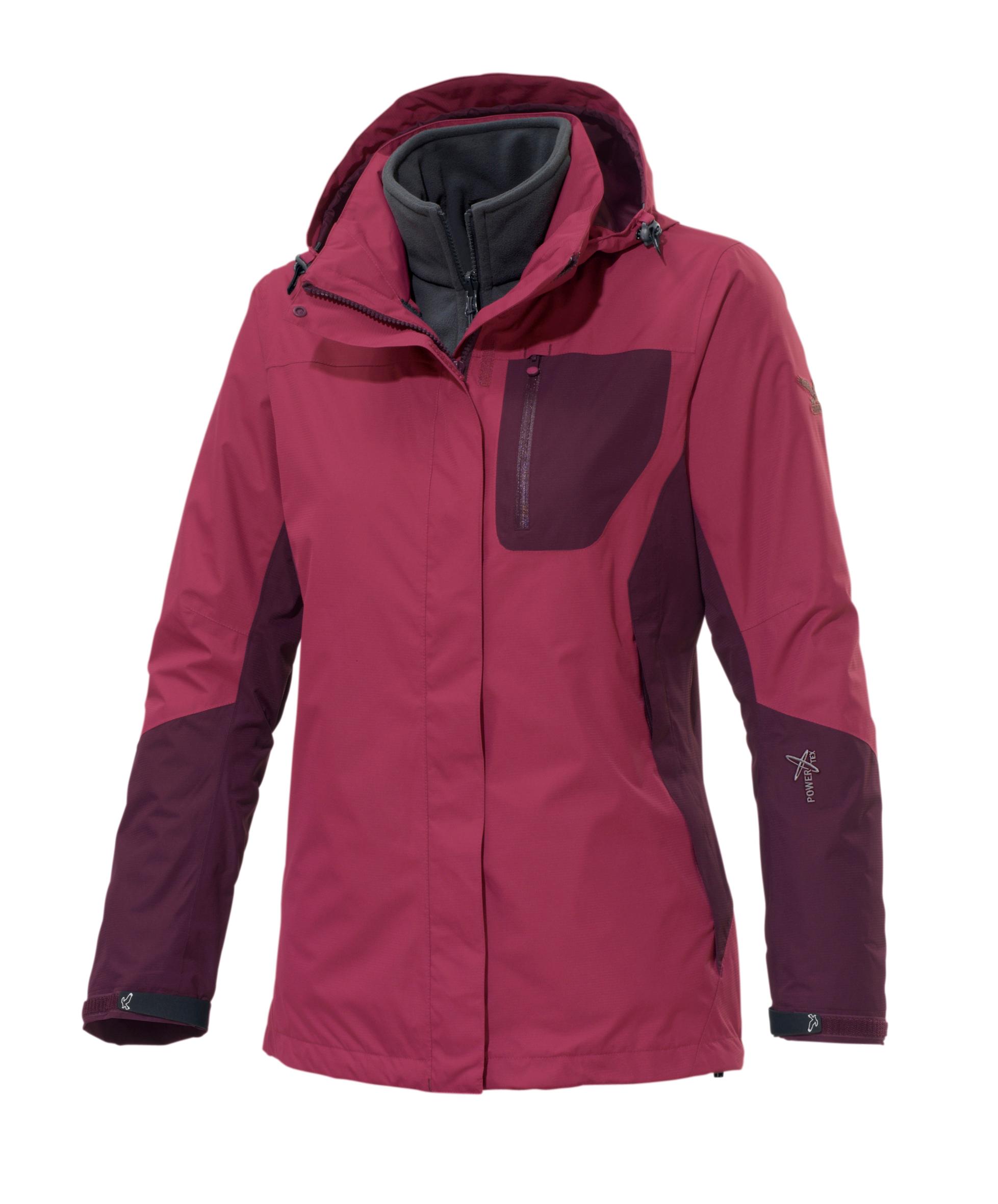 SALEWA 2-in-1 Doppeljacke, mit Netzfutter und auszippbarer Innenjacke aus weichem Fleece; wasserdichtes, winddichtes und atmungsaktives Powertex® schützt zuverlässig vor Regen und Nässe; abknöpfbare und verstellbare Kapuze, im Kragen zu verstauen, unterlegter und doppelt abgedeckter 2-Wege-Frontreißverschluss mit Klettblende, 2 Seitentaschen und eine hoch gestellte Tasche mit Reißverschluss, sowie 1 Innentasche mit Reißverschluss; Armabschlüsse mit Klettriegeln, Saumkordel mit Stopper zur individuellen Weitenregulierung; Fleece-Innenjacke mit 2 Seitentaschen; 100% Polyester.