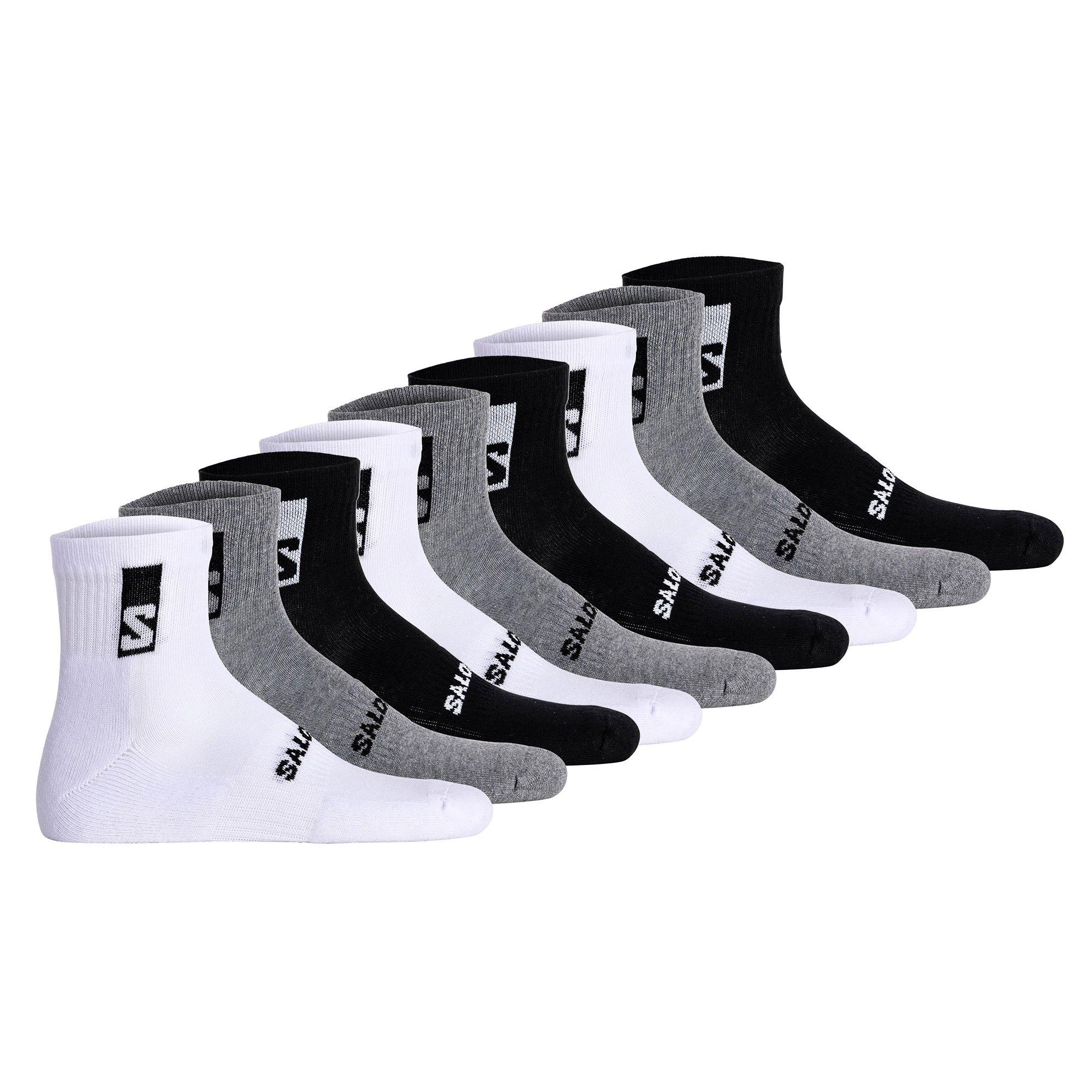 Salomon Unisex Socken EVERYDAY ANKLE im 9er Pack aus Baumwollmischung mit Frottee-Konstruktion. Mit elastischer Stütze und verstärkten Bereichen. Gerippter Bund mit Salomon-Logo.