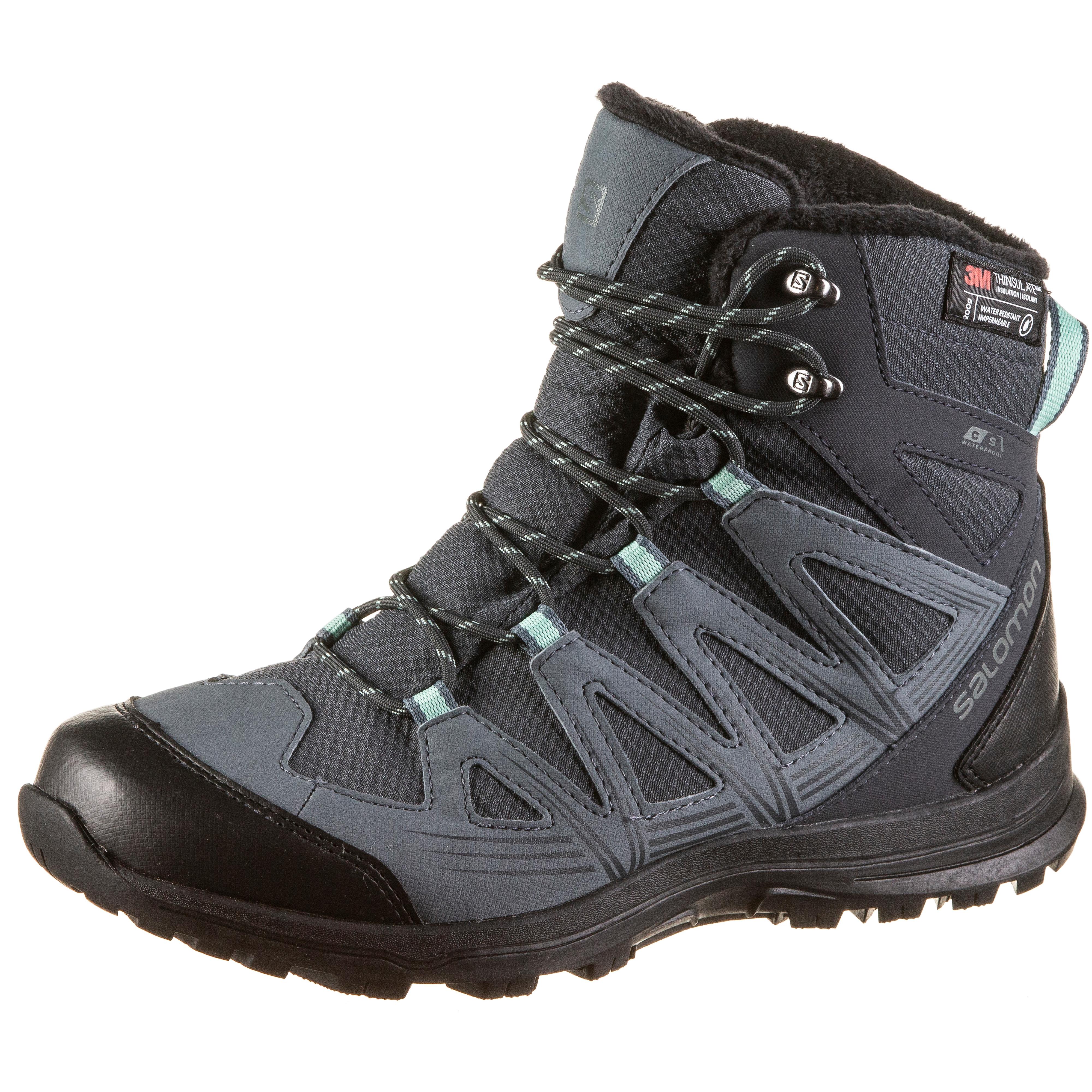 Winterschuhe für Damen, mit hochfunktionaler 3M Thinsulate™-Isolierung, für höchsten Kälteschutz; flexible, leichtgewichtige und durchgehend wasserdichte Innenschuh-Konstruktion für kompletten Wetterschutz, dank der ClimaSalomon™ Waterproof Funktion; schützende Zehen- und Fersenkappe; Schnürung mit seitlichen Zugbändern, für eine optimal personalisierbare Anpassung an den Fuß; die Zuglasche erleichtert das An- und Ausziehen; reflektierende Elemente; die Contagrip®-Außensohle sorgt für hervorragende Haftung auf unterschiedlichen Untergründen; herausnehmbare OrthoLite®-Einlegesohle mit feuchtigkeitsableitender und antibakterieller Eigenschaft.