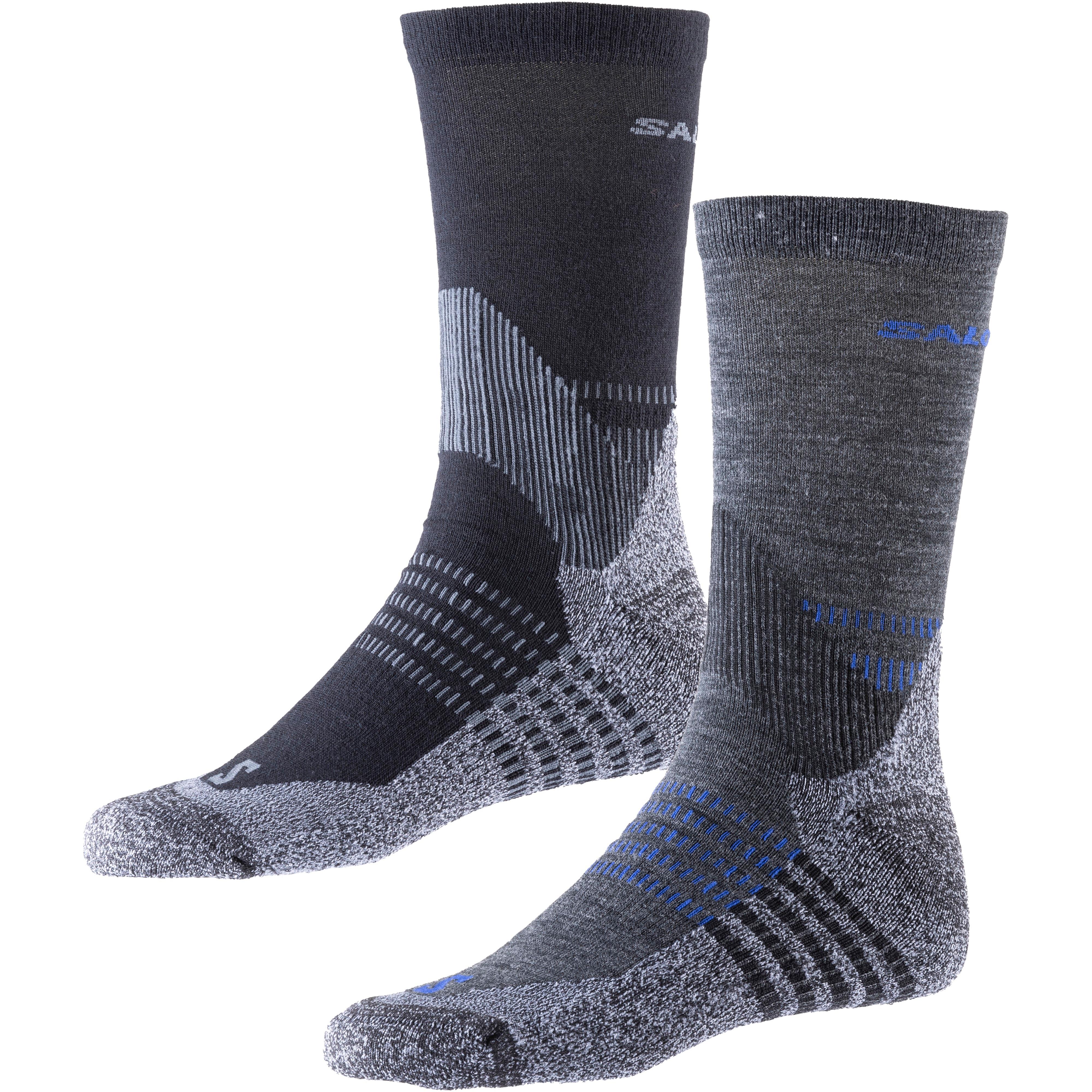 2er Pack Socken mit schweißabsorbierenden und temperaturregulierenden Eigenschaften; mittelhoch; anatomische Rechts-Linkspassform; verstärkte Fußsohle; elastische Stütze im Spann; flache Zehennaht für einen reibungsarmen Tragekomfort; Material 34% Polyamid, 24% Polypropylen, 20% Wolle (Merinowolle), 20% Polyacryl, 2% Elastan.