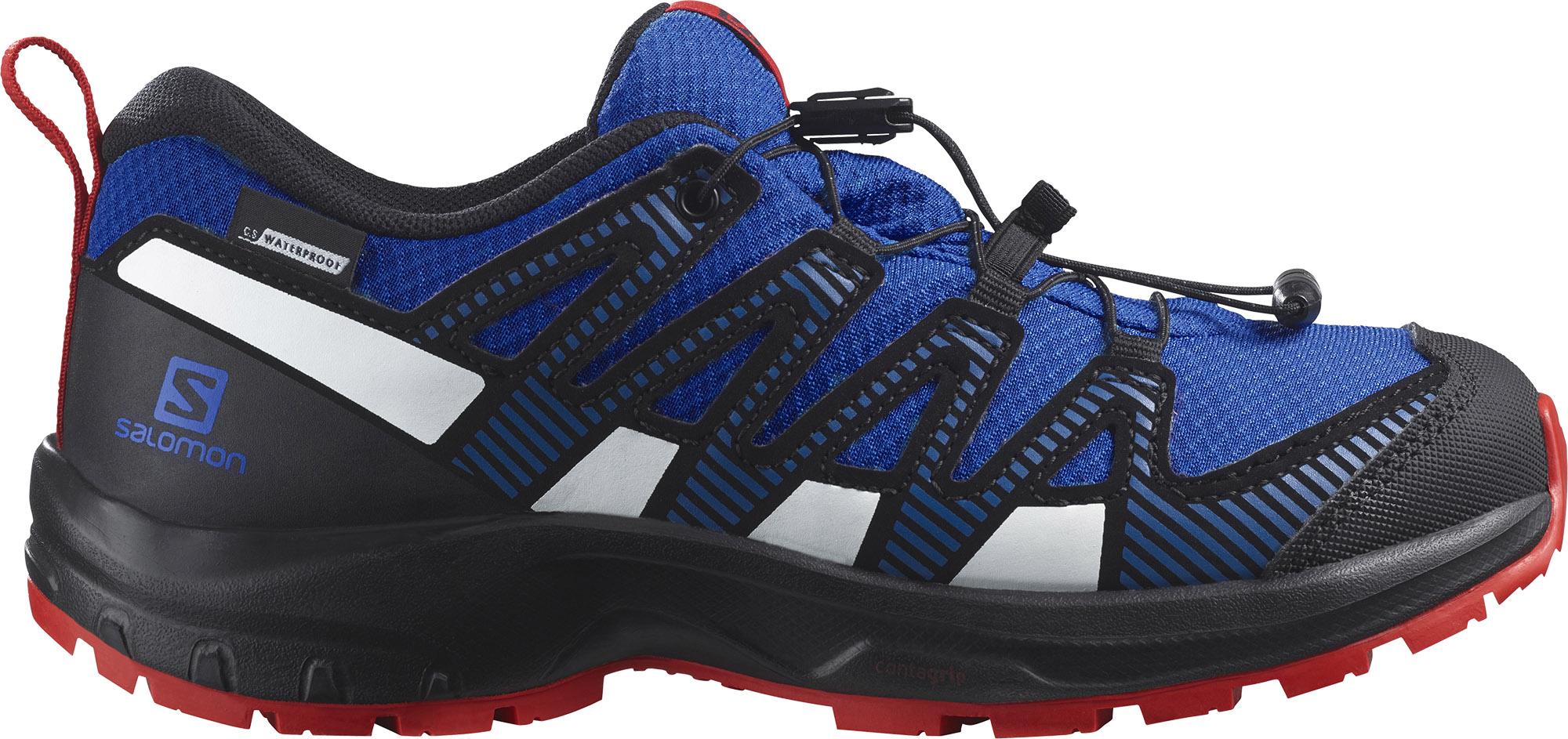 Multifunktionsschuhe für Kinder mit wasserdichter ClimaSalomon™ Membran; robustes Textil-Obermaterial; Quicklace™ Schnellschnürsystem; gepolsterter Schaft mit Zuglasche; Futter aus ME:sh®- und Textil; OrthoLite® Einlegesohle; EnergyCell-Zwischensohle; die SensiFit™-Konstruktion umhüllt den Fuß bequem und passgenau; die Contagrip®-Außensohle vereint hervorragenden Grip mit einer langlebigen Materialmischung, um auf allen Oberflächen dauerhaft Trittfestigkeit zu bieten; Sprengung: 8 mm; Standard-Passform.