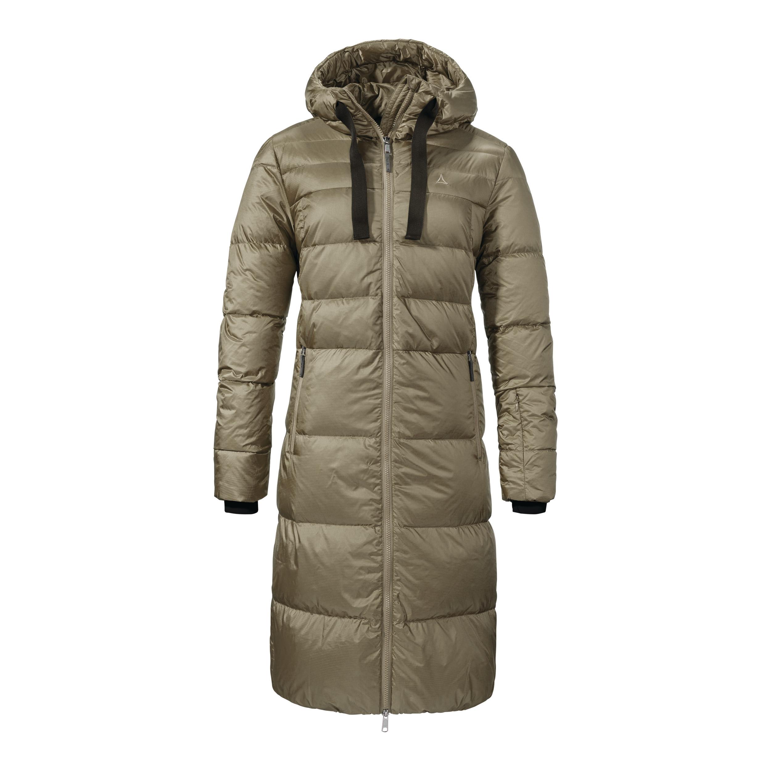 Im Alltag rundum wohlig warm und dabei auch noch mega stylisch aussehen – das bietet die superleichte Daunenjacke von Schöffel. Der winterliche Allrounder ist knieumspielend – hält also von Kopf bis Fuß durch die RDS-zertifizierten Daunen schön warm. Gleichzeitig bietet das Material auch eine optimale Zirkulierung der Luft, wodurch kein unangenehmer Hitzestau entstehen kann. Das Material der Schöffel Jacke ist des Weiteren winddicht sowie wasserabweisend, was neben Multifunktionalität auch einen optimalen Tragekomfort hervorruft. Komfort wird bei diesem Schöffel Mantel großgeschrieben und so verfügt dieser auch über einen speziellen Wärmekragen sowie seitliche Schlitze, die zu mehr Bewegungsfreiheit beitragen.