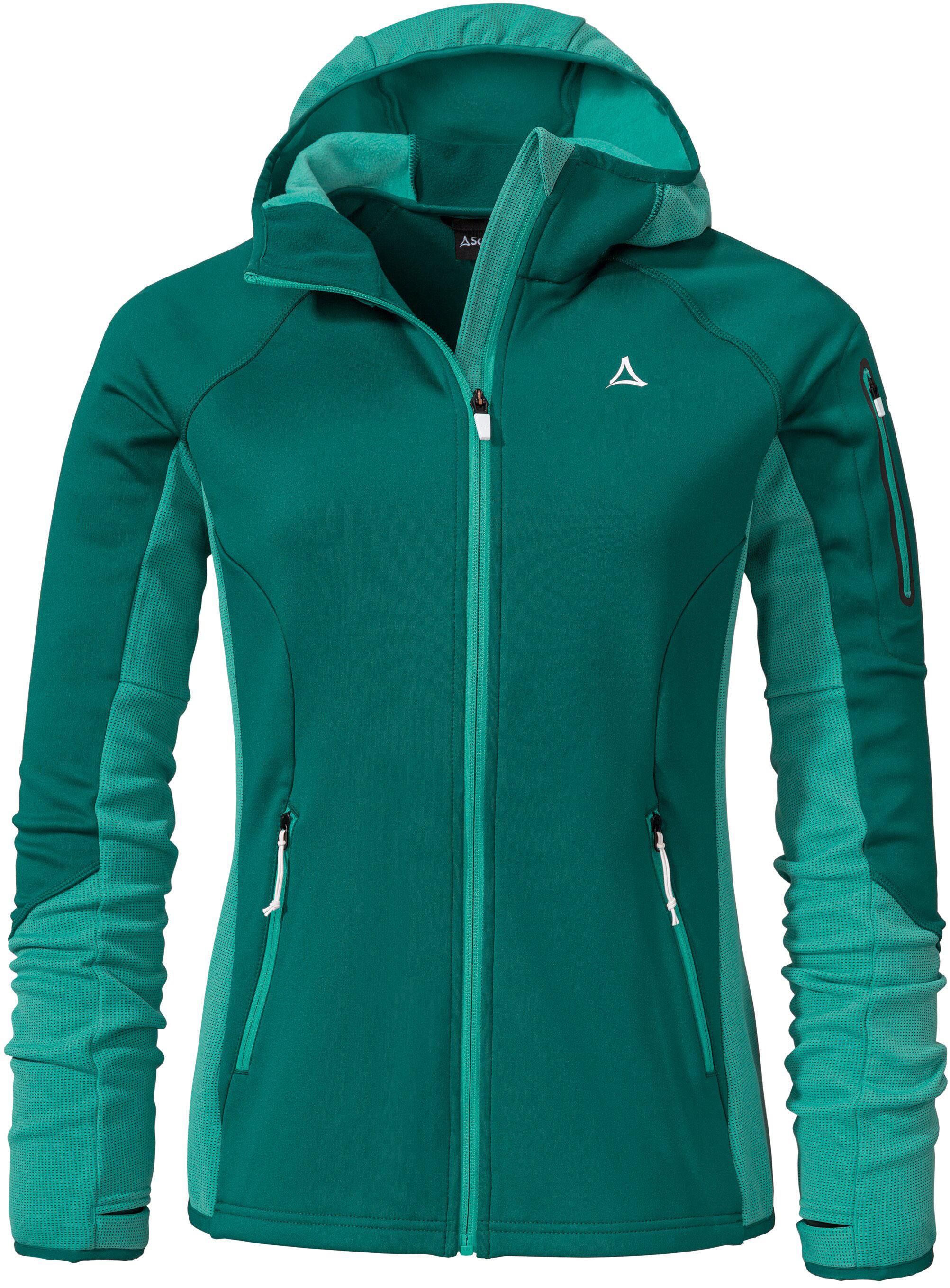 Fleecejacke aus 4-Wege-Stretch in Colorblock-Optik; 4D Body Mapping für maximale Bewegungsfreiheit; feste Kapuze; durchgehender Frontreißverschluss; 2 Reißverschlusstaschen; Flatlocknähte; Ärmelabschlüsse mit Elastikbündchen und Daumenlöchern; feuchtigkeitsregulierend; schnelltrocknend; Regular Fit; dauerhaft wasserabweisendes, ohne PFC hergestelltes Finish; bluesign® product; Material 94% Polyester, 6% Elastan.