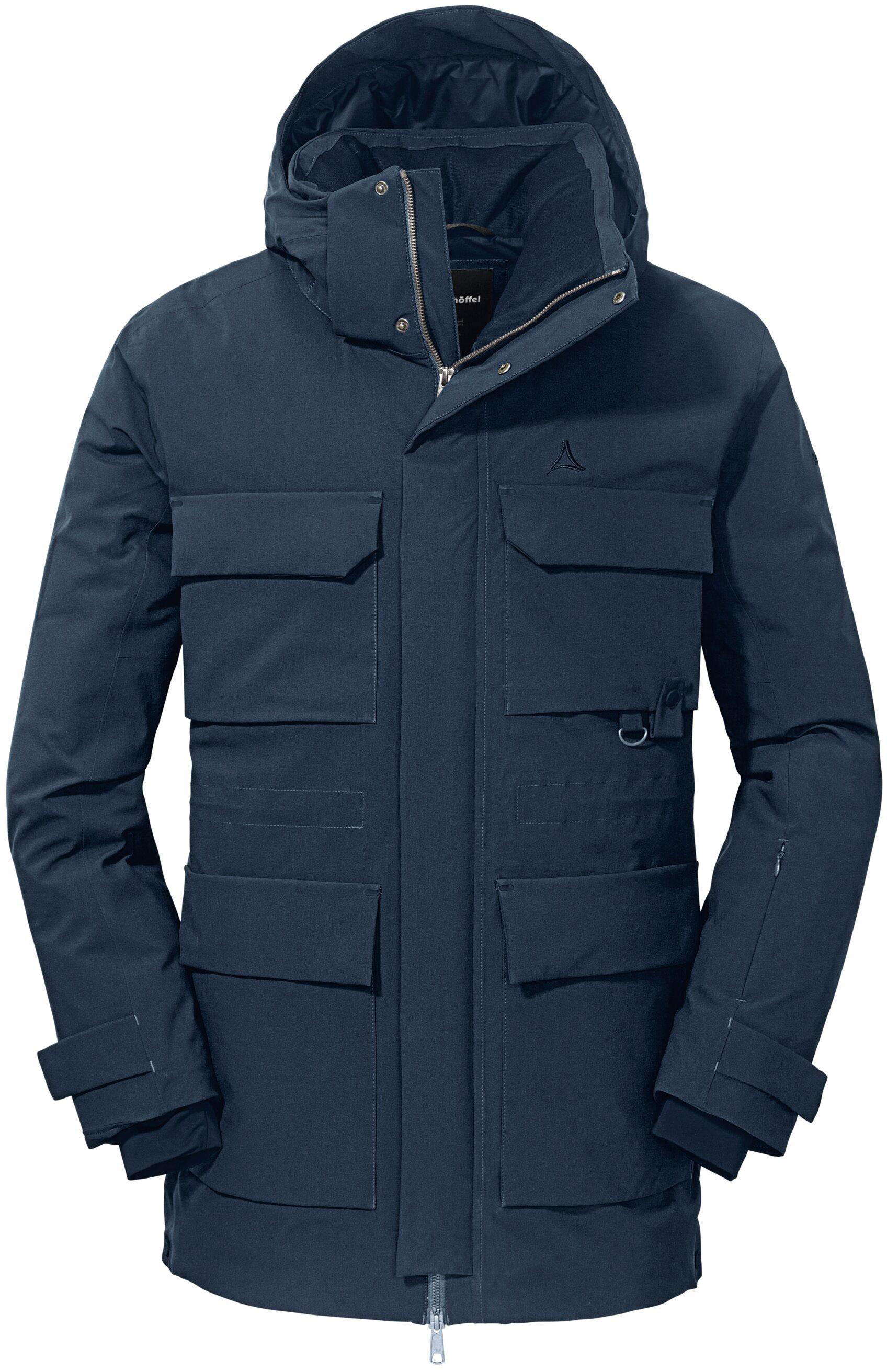Wind- und wasserdichte mit warmer Daunen-Isolierung; verstell- und abnehmbare Kapuze; hoch schließender Kragen; Frontreißverschluss mit Windblende; 4 Pattentaschen auf der Vorderseite; Seitenschlitze für mehr Bewegungsfreiheit; reflektierende Details; verklebte Nähte; Wassersäule 10000 mm; hoch atmungsaktiv; elastisch; dauerhaft wasserabweisendes, ohne PFC hergestelltes Finish; Regular Fit; bluesign® product; enthält nichttextile Teile tierischen Ursprungs; Material 100% Polyester.