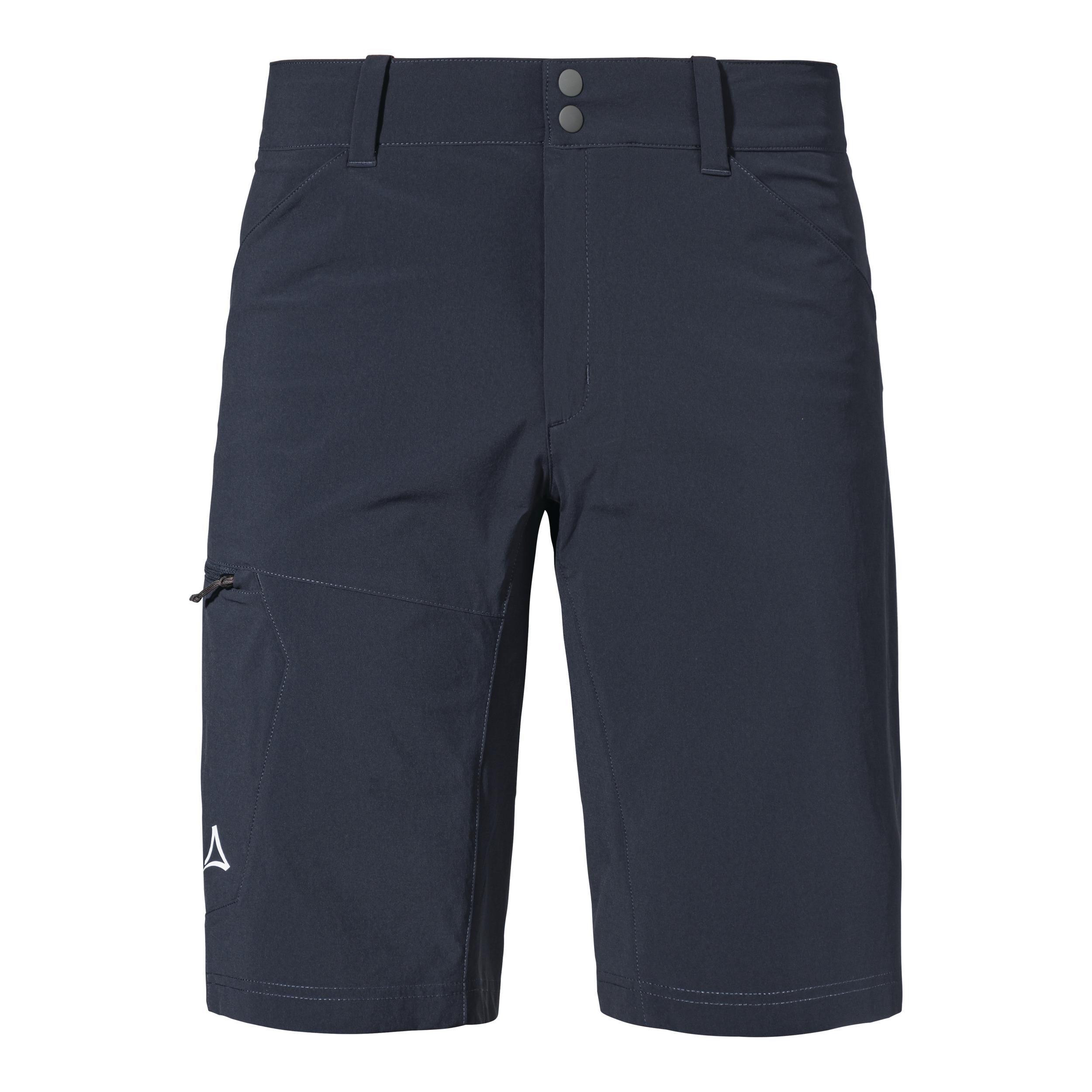 Die schnell trocknende und wasserabweisende Bike Shorts von Schöffel überzeugt neben der Multifunktionalität auch durch den urbanen Look. Das schlichte Design ermöglicht, ohne aufzufallen, auch abseits des Fahrradsattels eine gute Figur zu machen. In Sachen Funktion muss sich die Schöffel Bike Shorts allerdings auch nicht verstecken. Der 4-Wege-Stretch sorgt für maximale Bewegungsfreiheit und Komfort, welcher durch die innenliegende Bundverstellung noch weiter unterstützt wird. Zudem sorgt das atmungsaktive Material dafür, dass kein unangenehmer Hitzestau in der Shorts entsteht. Eine Oberschenkeltasche mit Reißverschluss ermöglicht dann noch das schnelle und sichere Verstauen von Kleinigkeiten. Wem Komfort auf dem Rad ein besonderes Anliegen ist, sollte zur Rad Shorts noch eine Schöffel Skin Pants erwerben. Diese Radunterziehhose gibt es mit verschiedenen anatomisch geformten Polstern, die in ihrer Intensität (8h+/4h+/2h+) variieren. Die Unterziehhose von Schöffel sorgt für eine ausgezeichnete Druckverteilung auf dem Sattel und bietet somit das Extra an Komfort. Unser Model ist 187 cm groß und trägt Gr. 50.